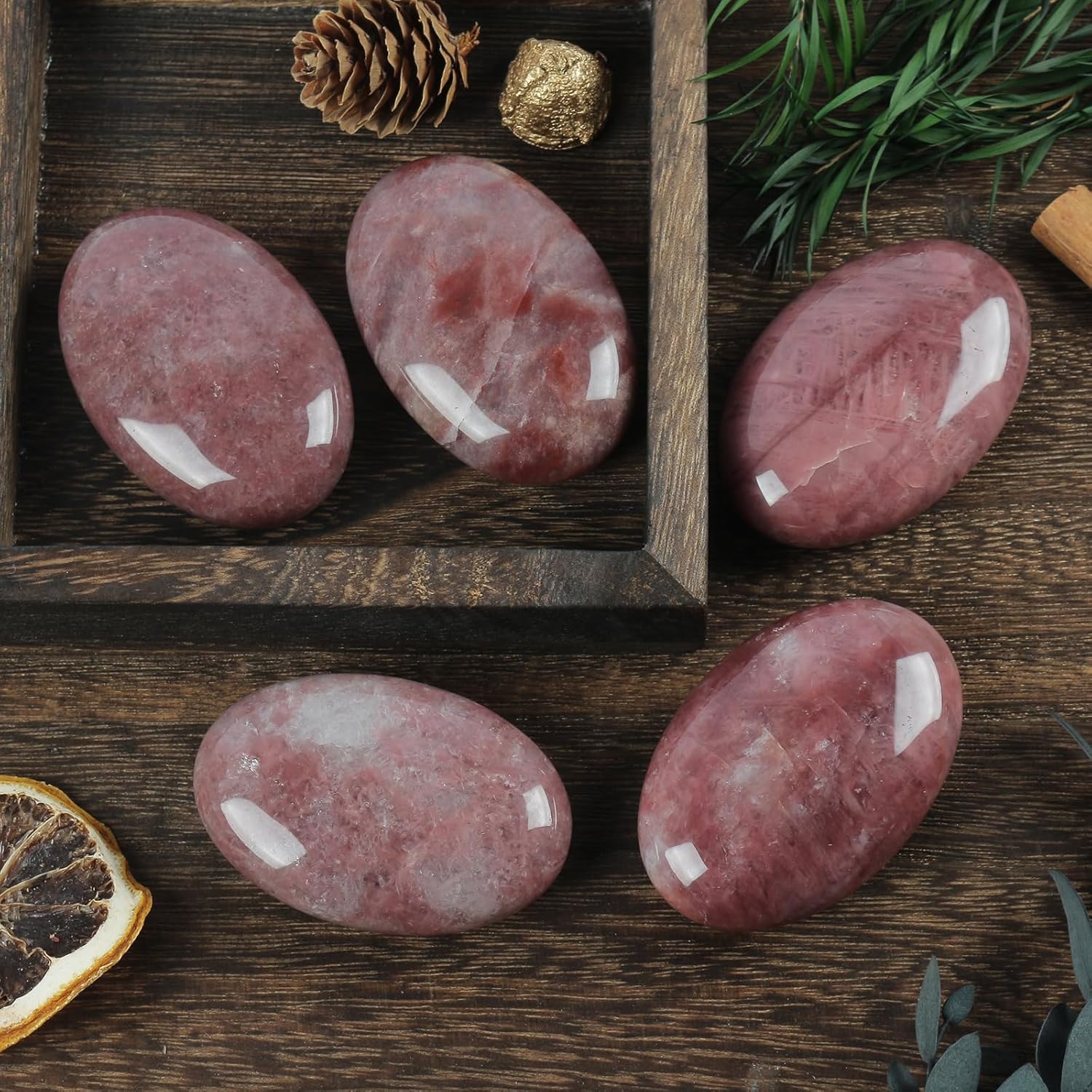 Natural Strawberry Quartz Oval Polished Worry Stones, Healing Crystal Indoor Fountain Stones Massage Energy Anxiety Relief Items