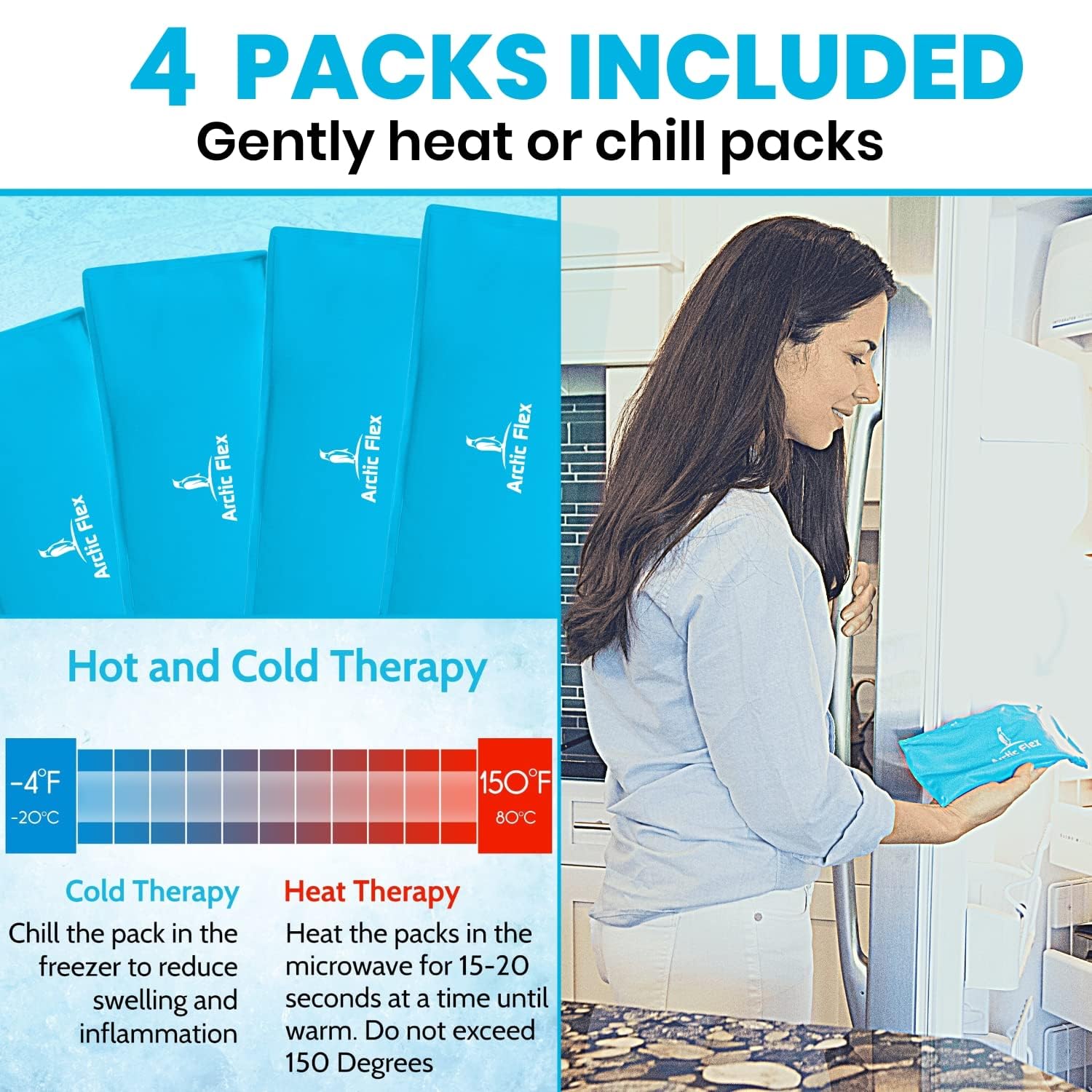 - VERSATILE HOT OR COLD GEL PACKS: Filled with a unique, non-toxic gel, the elbow brace includes four reusable Arctic Flex gel packs that stay flexible when frozen to conform to the shape of the elbow for maximum cooling relief. The versatile gel packs may also be gently warmed for soothing heat therapy and easily secured in fastener pockets on the interior of the elbow cold wrap.