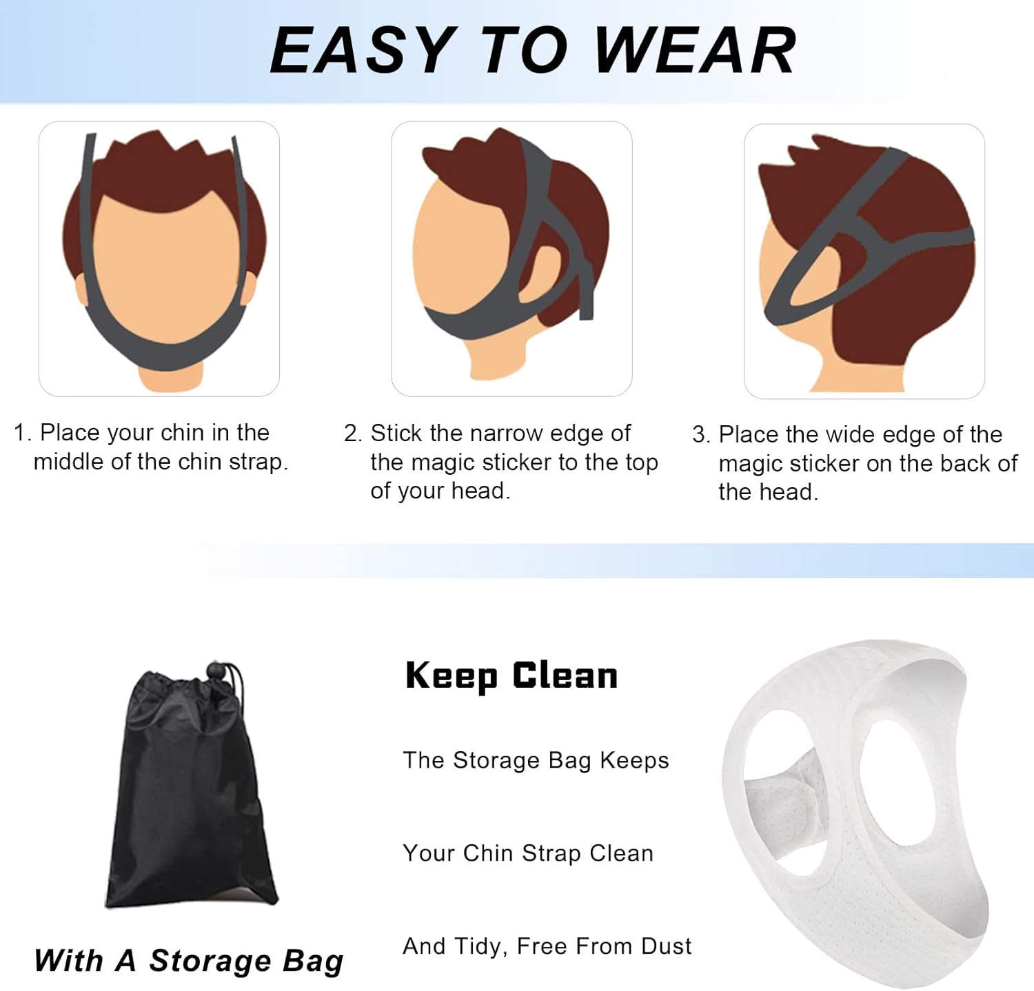 - EASY TO USE: Forzacx chin band uses adjustable, powerful non-stick hair magic stickers, simple and intuitive to wear, please refer to the size chart to determine if it fits your head circumference.No odor did not leg color that also means it won’t leave stains on your nice white pillows.
