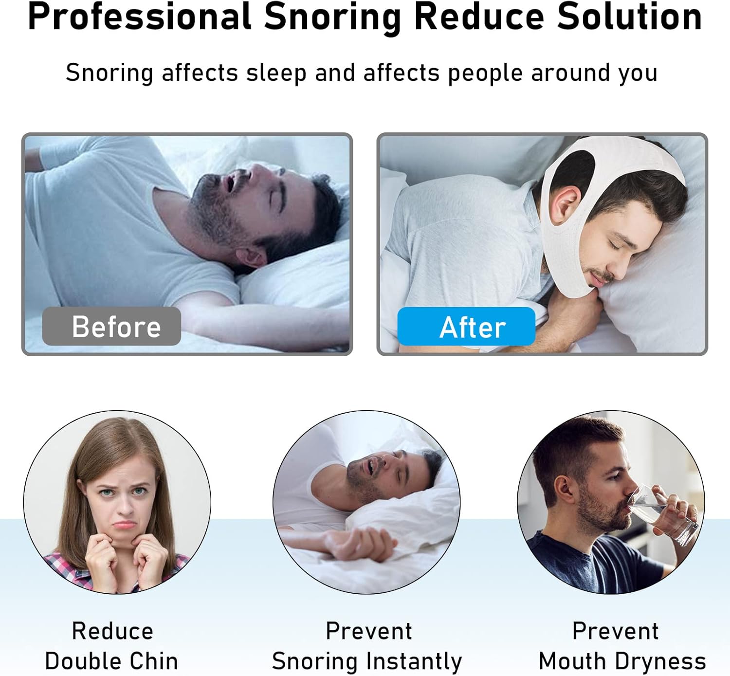 Chin Strap for Cpap Users Anti Snoring Devices - Forzacx Breathable Cpap Chin Strap Snoring Solution, Soft Non-Stick Hair Snore Stopper, Elastic Easy to Wear - White