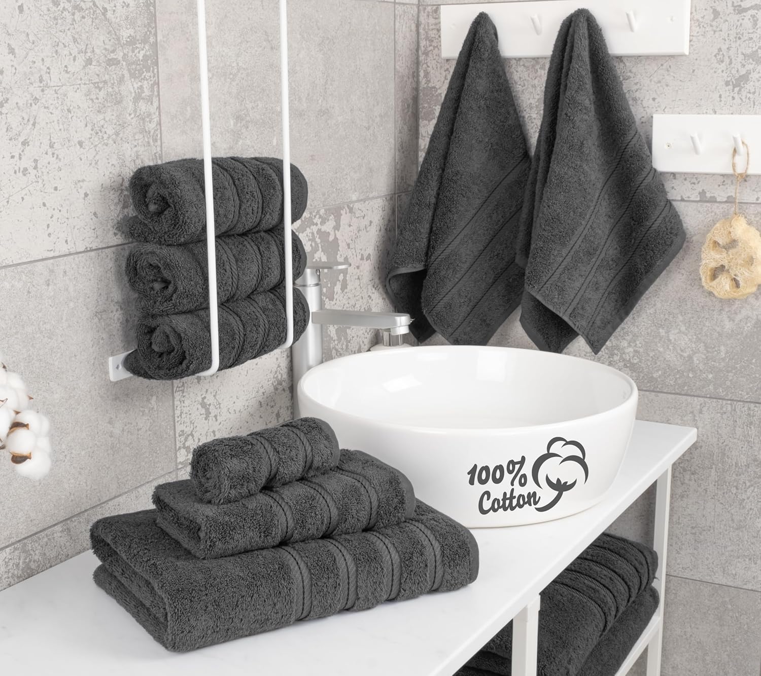 American Soft Linen Luxury 6 Piece Towel Set, 2 Bath Towels 2 Hand Towel 2 Washcloths, 600 GSM 100% Cotton Turkish Towels for Bathroom, Dark Gray Towel Sets