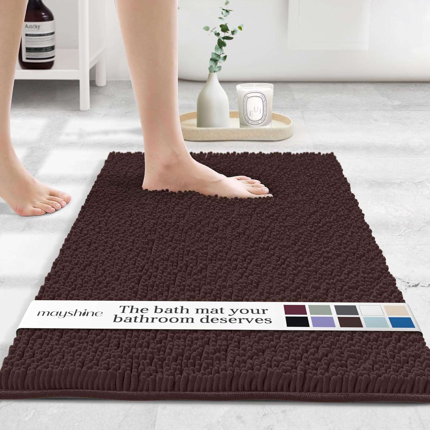 MAYSHINE Plush Shaggy Chenille Bath Mat | Extra Soft, Super Absorbent, Non-Slip Bathroom Rug | Fluffy Microfiber, Area Rug Sets for Bathroom Floor, Kitchen, Living Room | 24"x17" | Brown