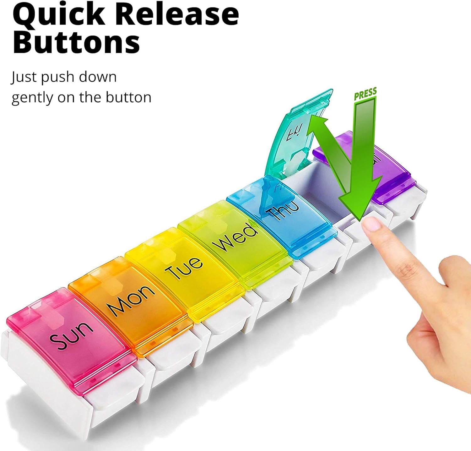 - CONVENIENT TO USE: Contoured for easy pill removal- just press gently with your thumb in front of the container and the lid pops open for easy daily dispensing.