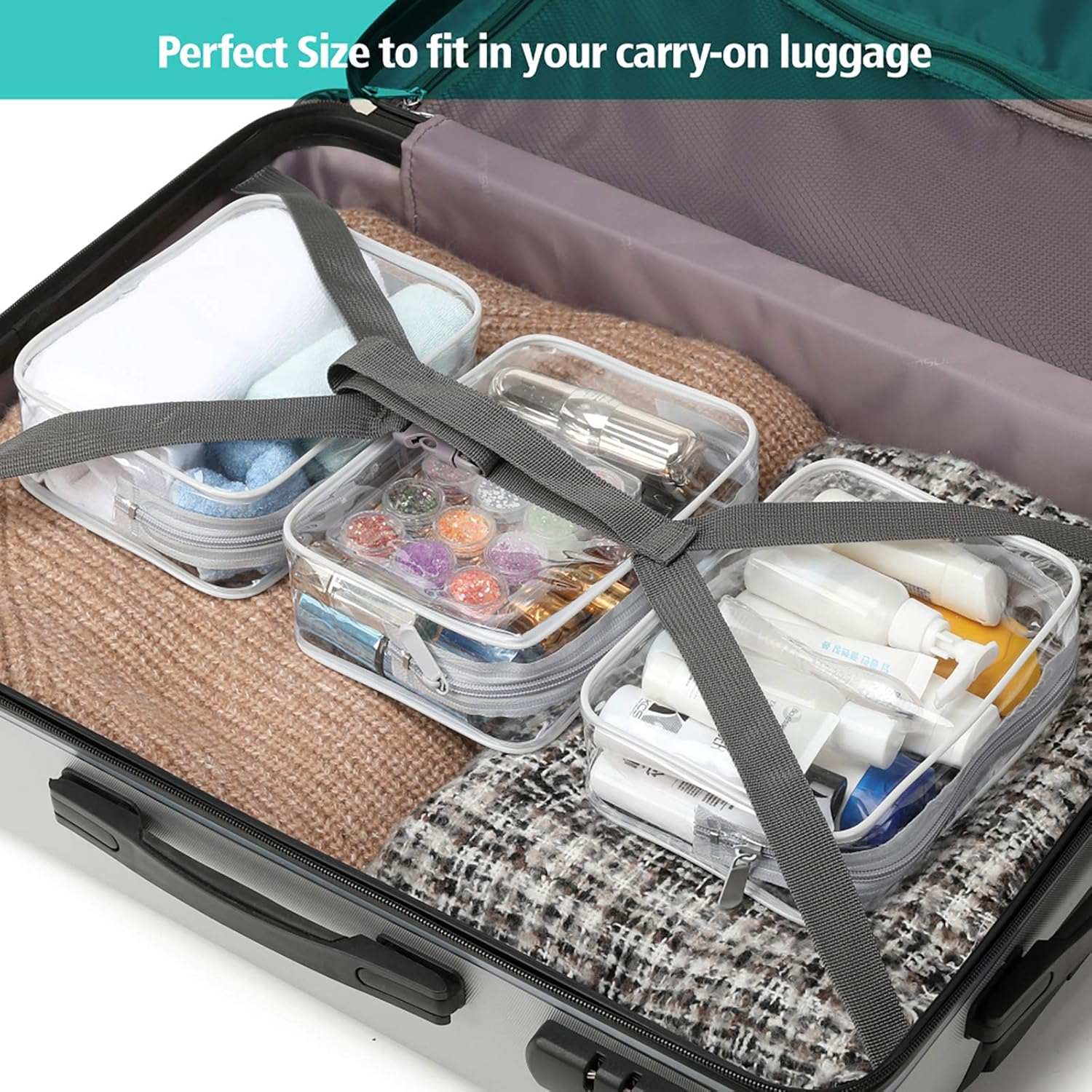 - TSA Approved: The 7.5 x 5.5 x 2.2 inch clear travel toiletry bag strictly follows TSA 3-1-1 liquids rule for carry-on bag of all airlines, so you can easily and quickly pass through security screening with it in the airport