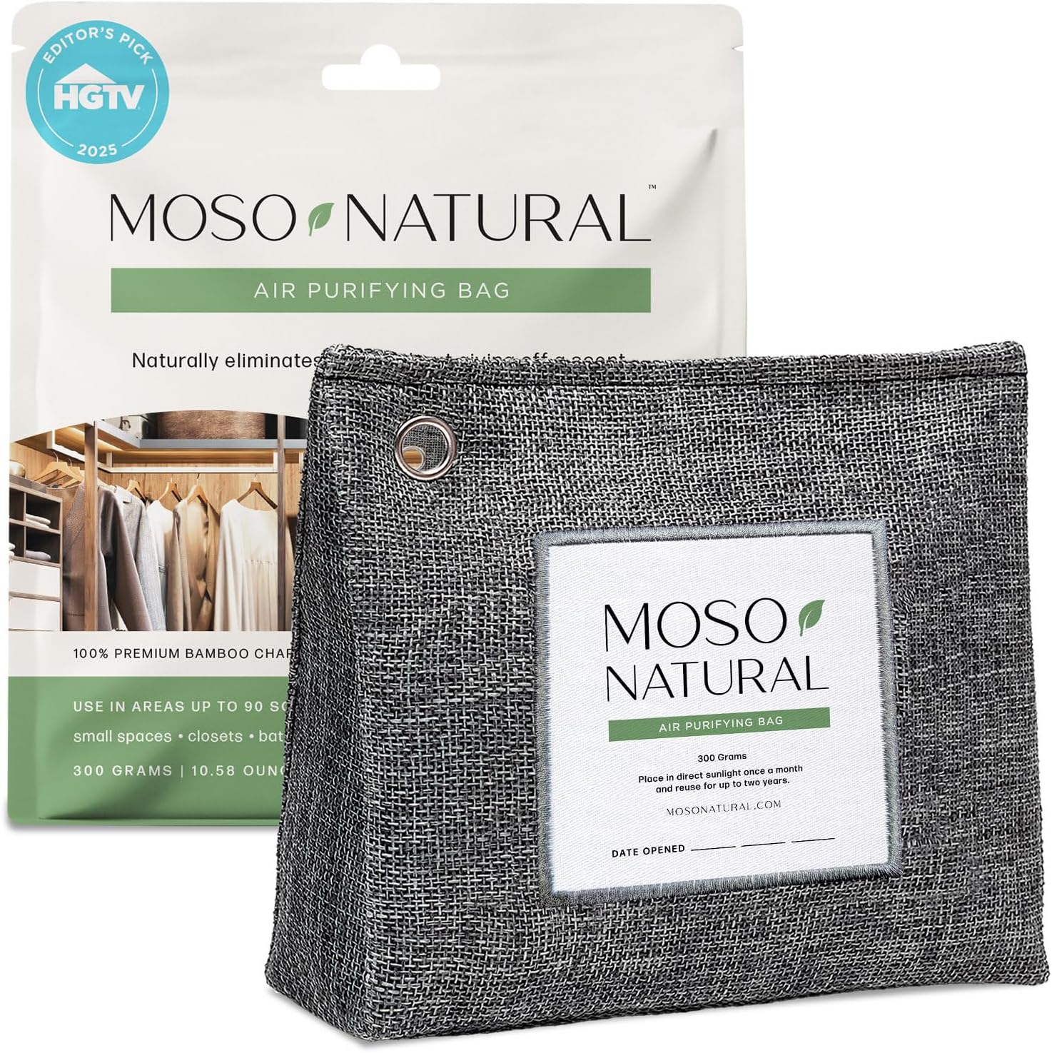- Closet Deodorizer & Pet Odor Eliminator: The Moso Natural Bamboo Charcoal Air Purifying Bag works like a magnetic sponge to actively absorb bad smells from the air without giving off a scent.