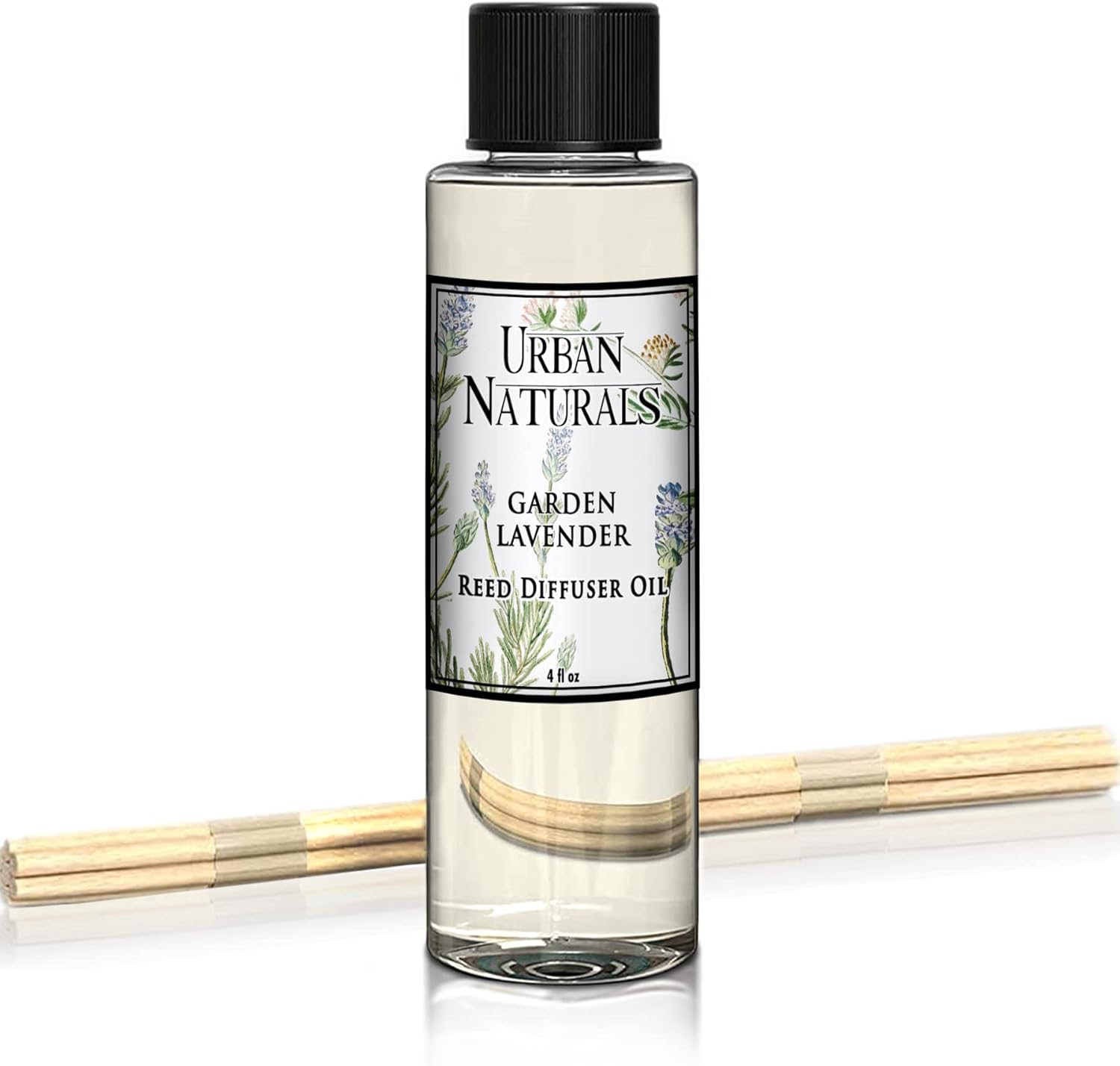 Urban Naturals Garden Lavender Scented Oil Reed Diffuser Refill | Includes a Free Set of Reed Sticks! Calming, Herbal Fragrance – 4 oz. Made in The USA