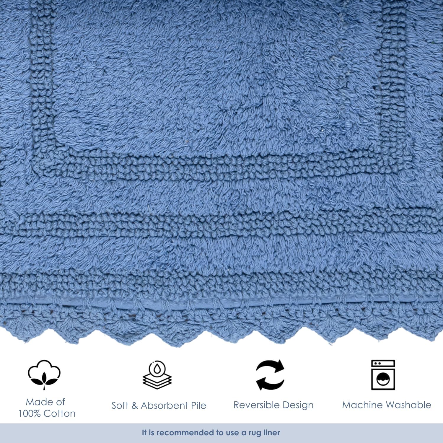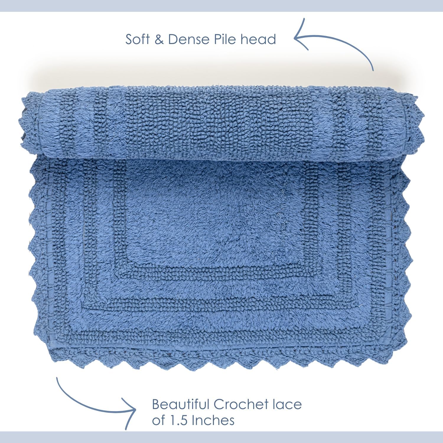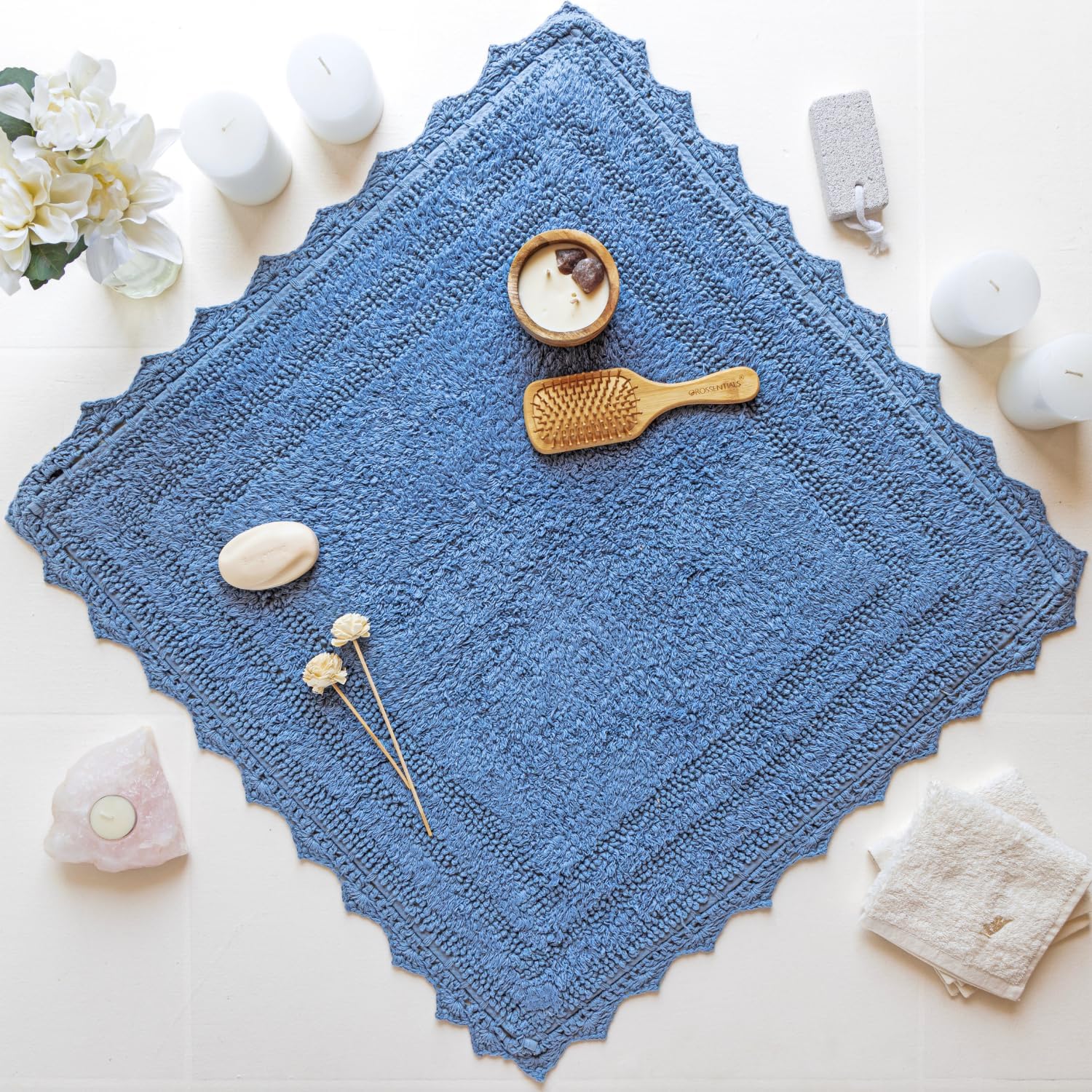 RAJRANG Parisian Blue Bath Mat 24 Inches Soft Absorbent Cotton Crochet Bath Rug for Bathroom Kitchen Spa Hotel