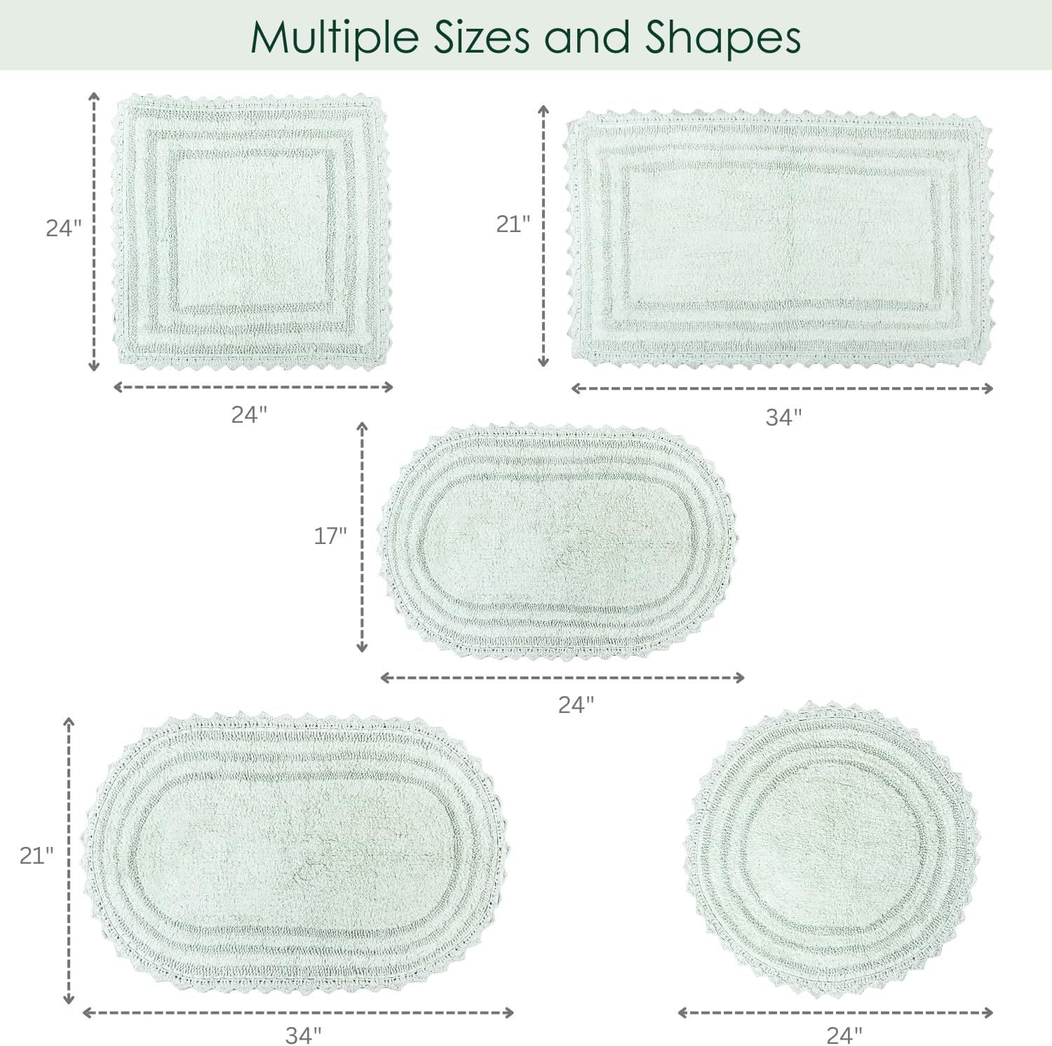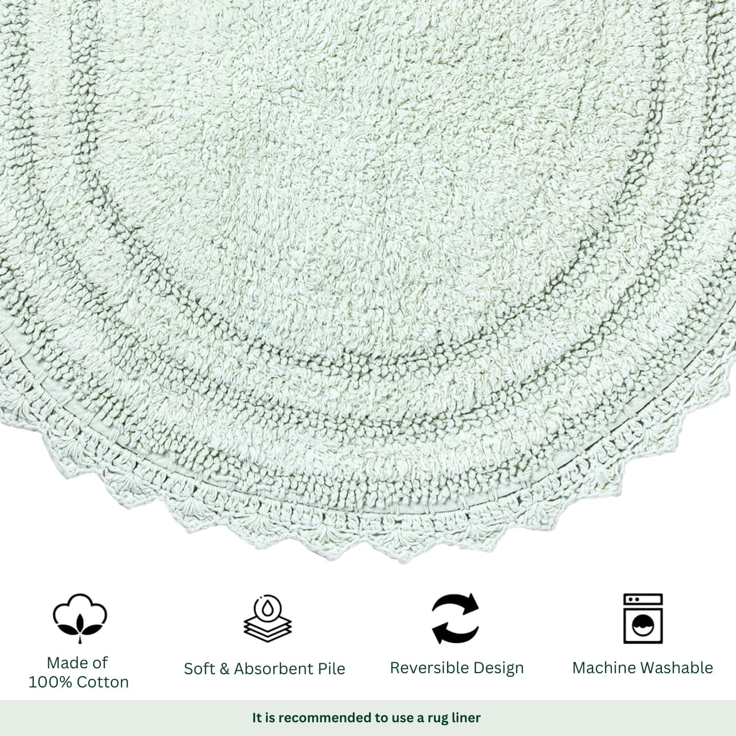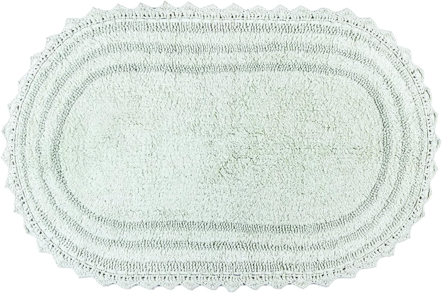 RAJRANG Meadow Mist Bathroom Rug with Crochet Pattern Cotton Absorbent Soft Reversible Boho Bath Mat Oval 24x17 Inches