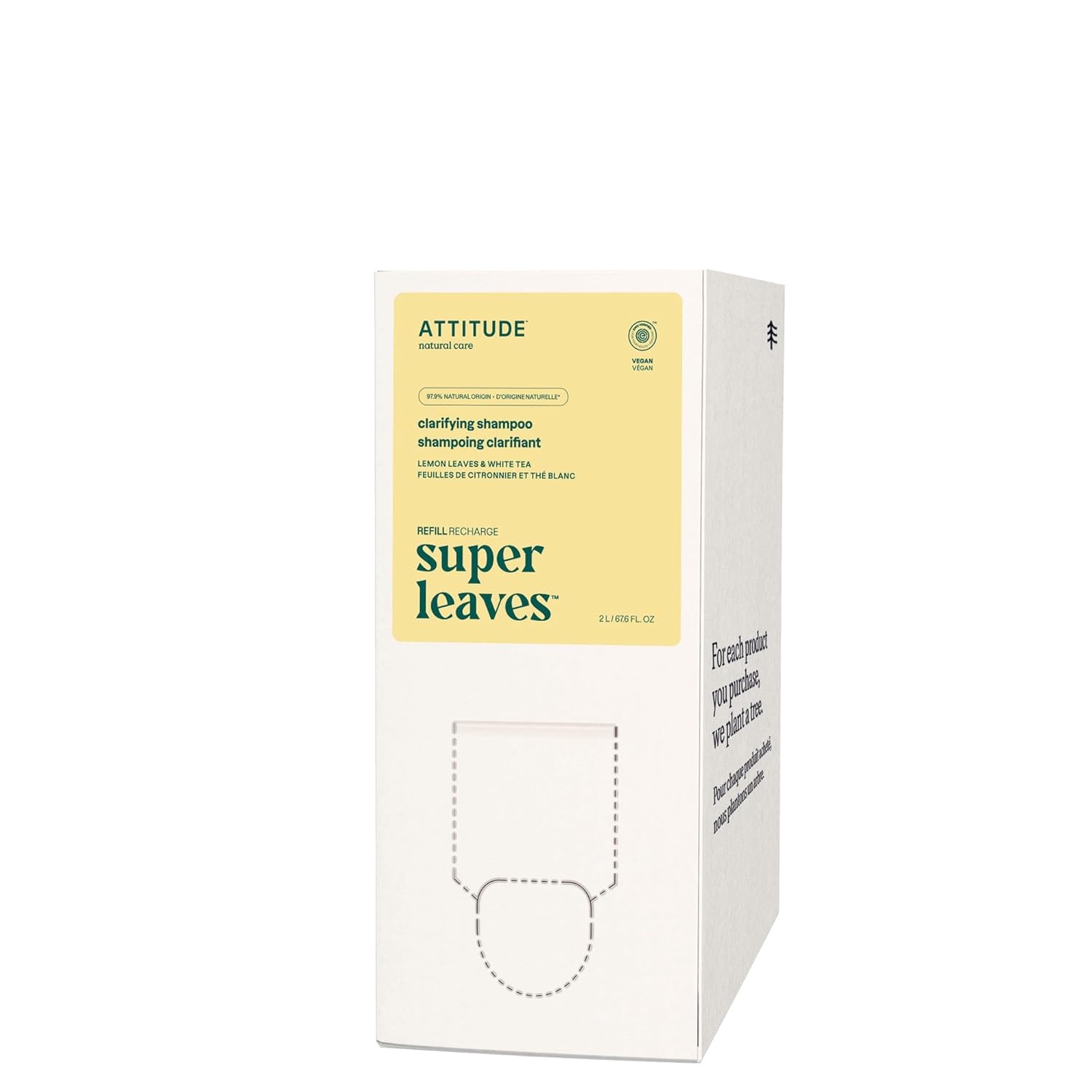 ATTITUDE Clarifying Hair Shampoo, Plant- and Mineral-Based, EWG Verified Vegan and Cruelty-free, Lemon Leaves and White Tea, Bulk Refill, 67.6 Fl Oz