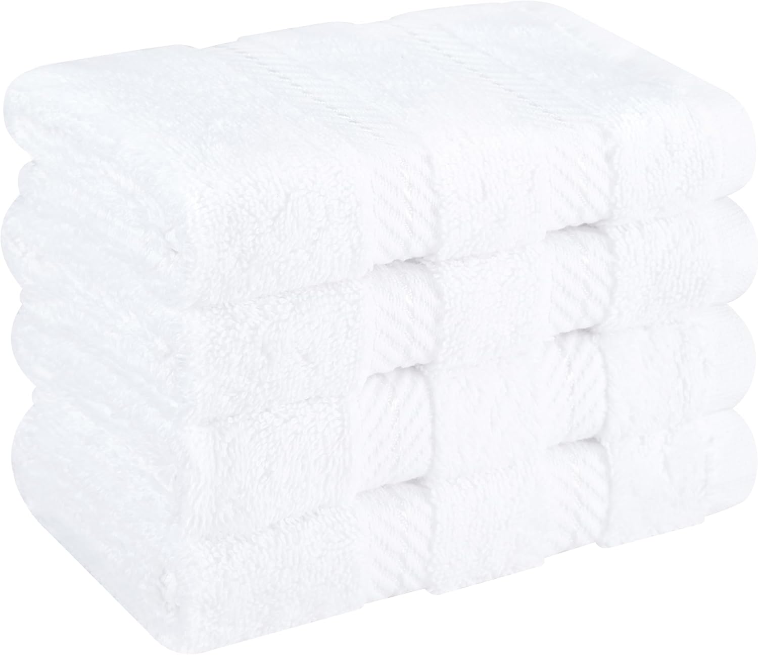 American Soft Linen Luxury Washcloths for Bathroom, 600 GSM 100% Cotton 4 Piece Turkish Wash Cloth Set, 13x13 in Soft Rags for Body and Face, White Washcloths