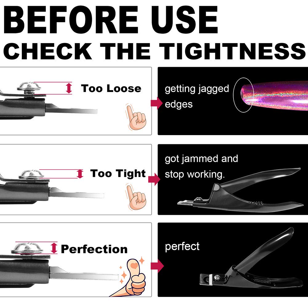 Black Premium Adjustable Stainless Steel Artificial Acrylic Fake False Nail Tip Clipper Cutter Trimmer Manicure Pedicure Sharp Blade Clip Tool For Salon Home Nail Art Beauty Design DIY