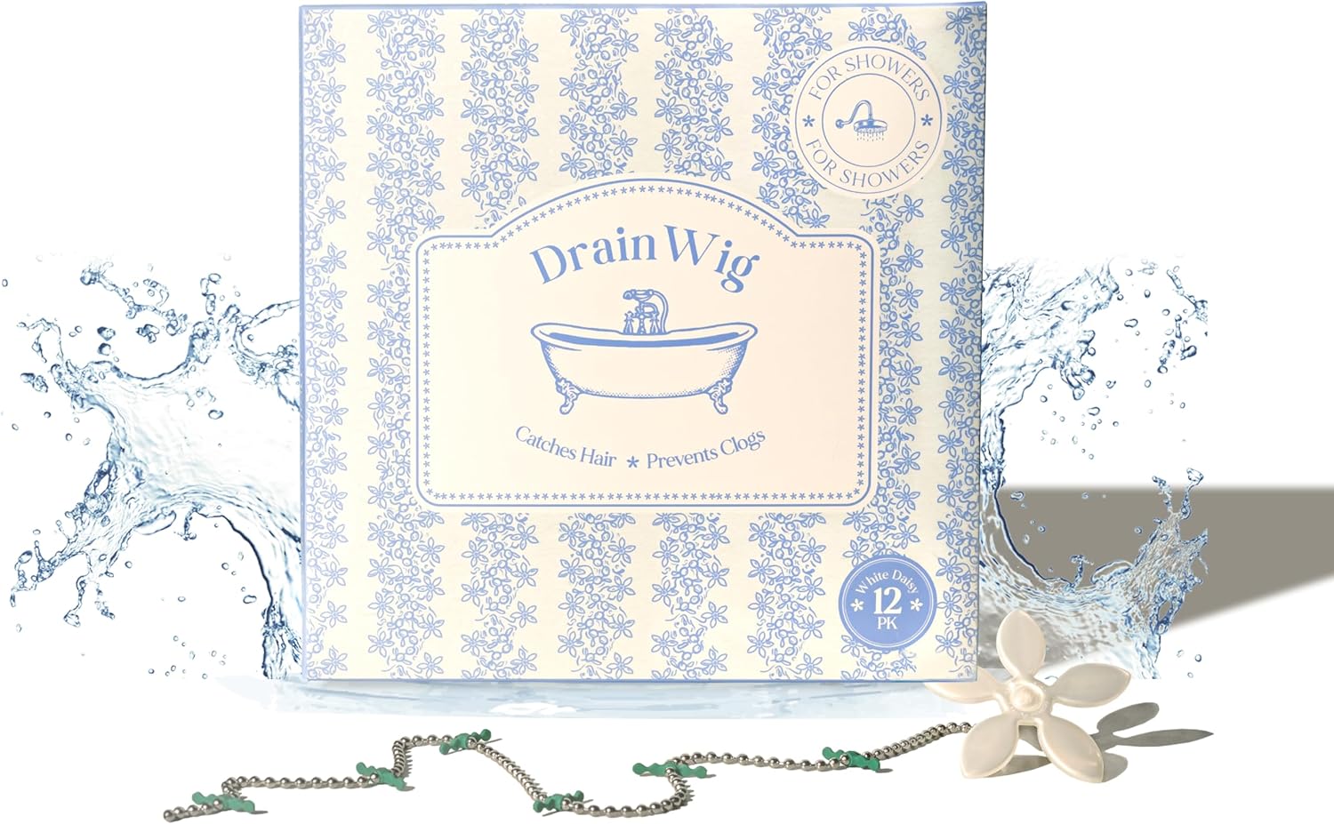 DrainWig Shower Drain Hair Catcher – Disposable White Flower (12-Pack) – No-Touch Hair Removal for Flat Shower Drains – As Seen on Shark Tank