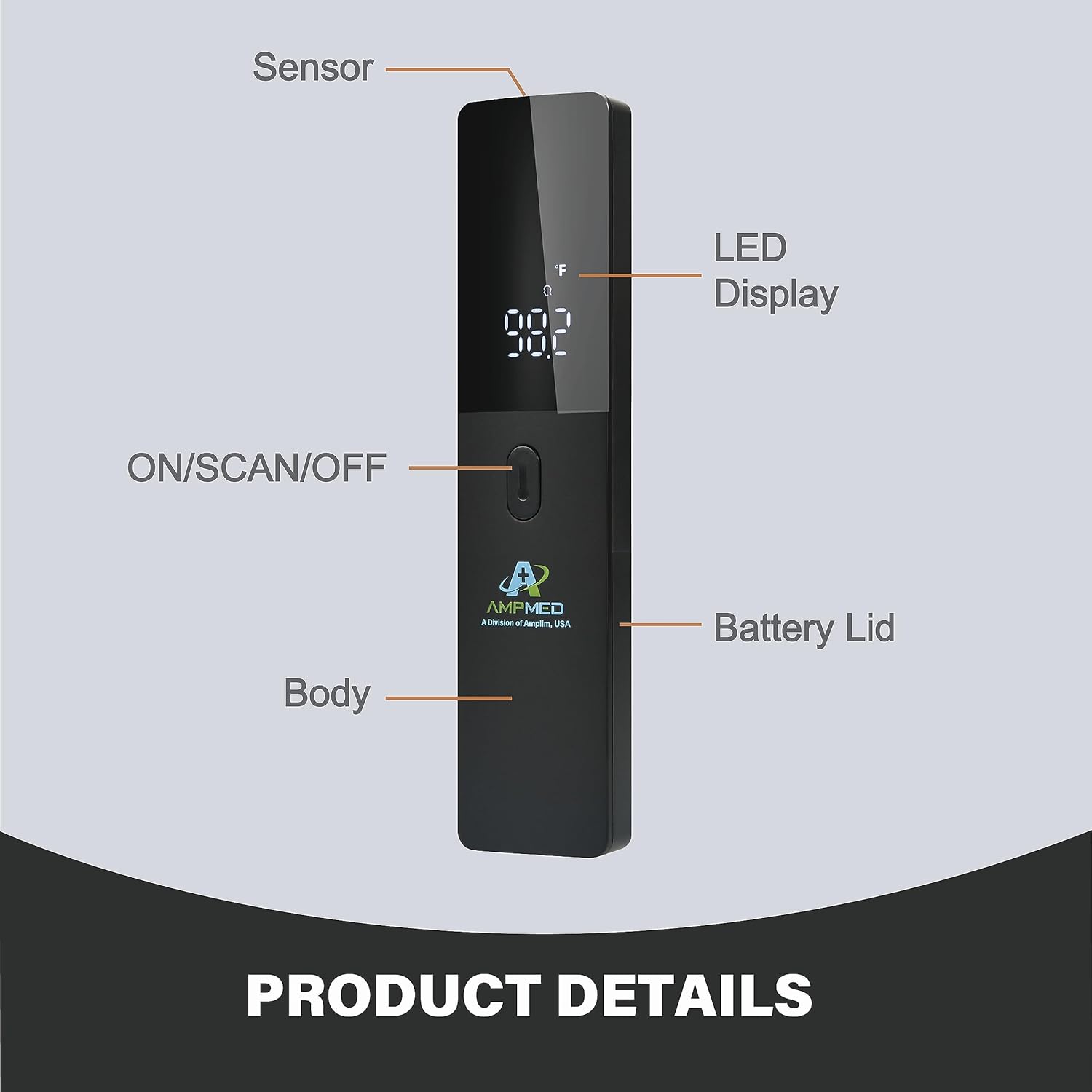 - Accurate Readings: The Amplim AmpMed Contactless Forehead Thermometer with advanced infrared technology for a quick 1 sec rapid home test without skin contact, is ideal for all ages