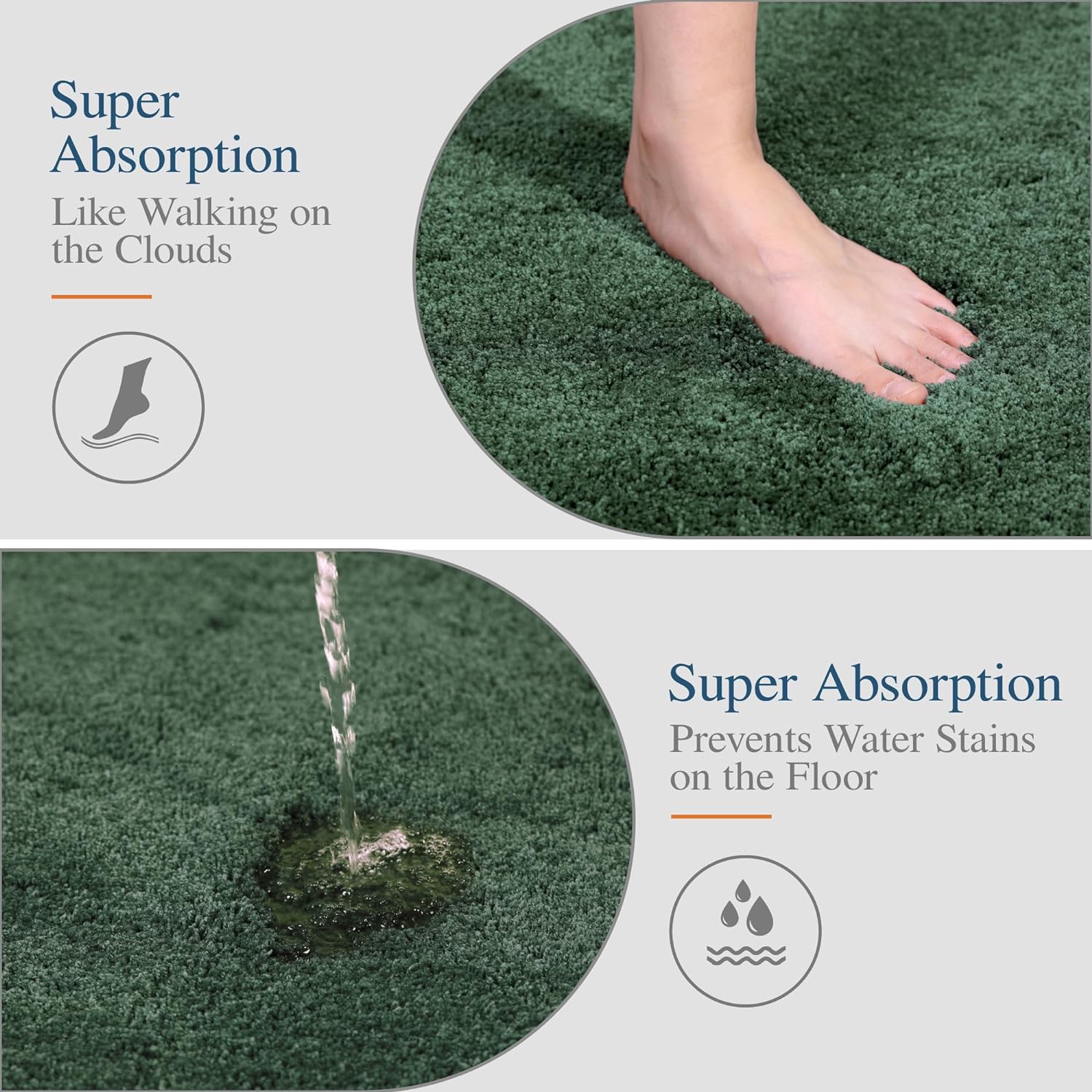 Walensee Bathroom Rug Non Slip Bath Mat (16 x 24, Hunter Green) Water Absorbent Soft Microfiber Shaggy Mat Machine Washable Bath Rug Thick Plush Rugs for Shower