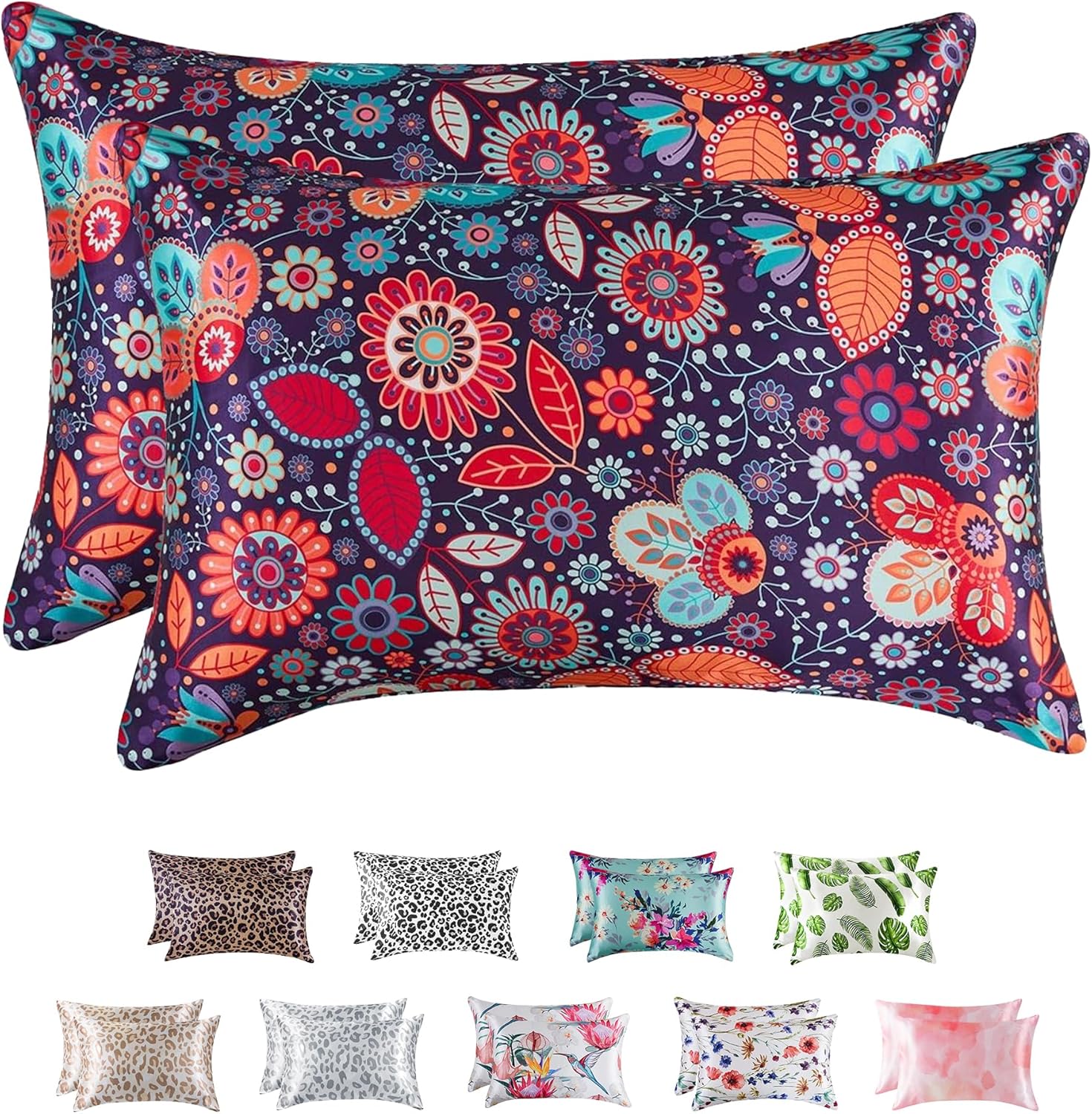 MR&HM Satin Pillowcase for Hair and Skin, Silk Satin Pillowcase 2 Pack, Queen Size Pillow Cases Set of 2, Silky Pillow Cover with Envelope Closure (20x30, Sunflower)