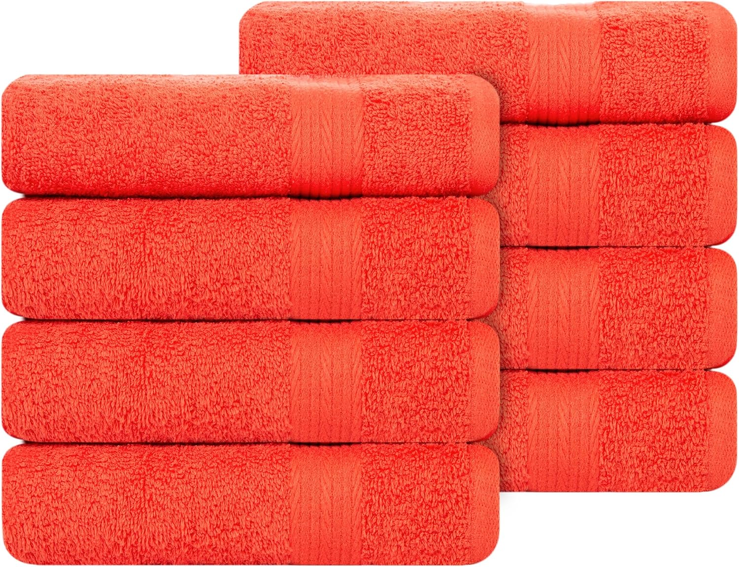 Ample Decor Bulk Hand Towels 18 X 28 Inch 600 GSM 100% Cotton, Soft Absorbent - 8 Pcs Orange