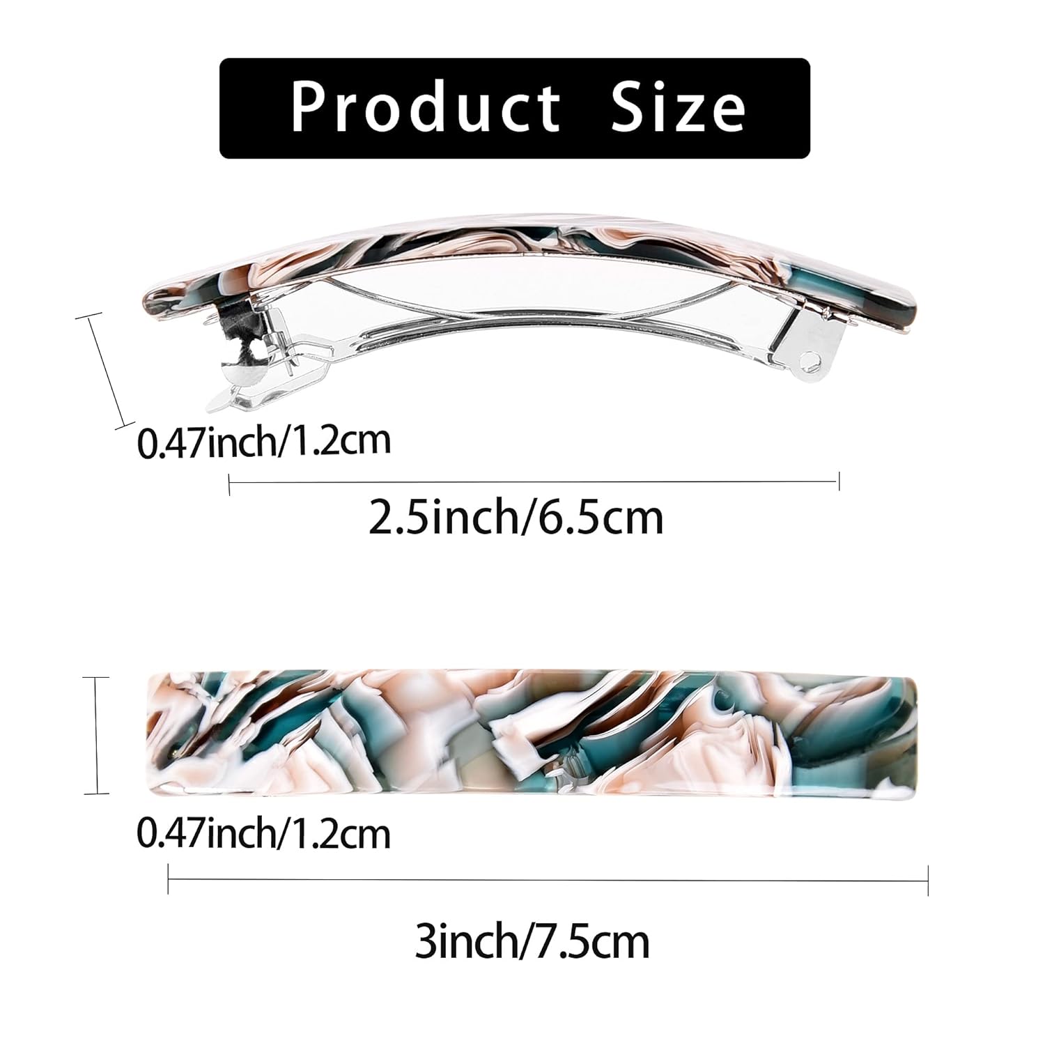 - Color and Size: This set women's hair barrettes includes 3 stylish colors:south sea,pink,pastel color marble print. Each barrette is approximately 3 inches long and lightweight, making it comfortable for all-day wear. Refer to the size chart before ordering.