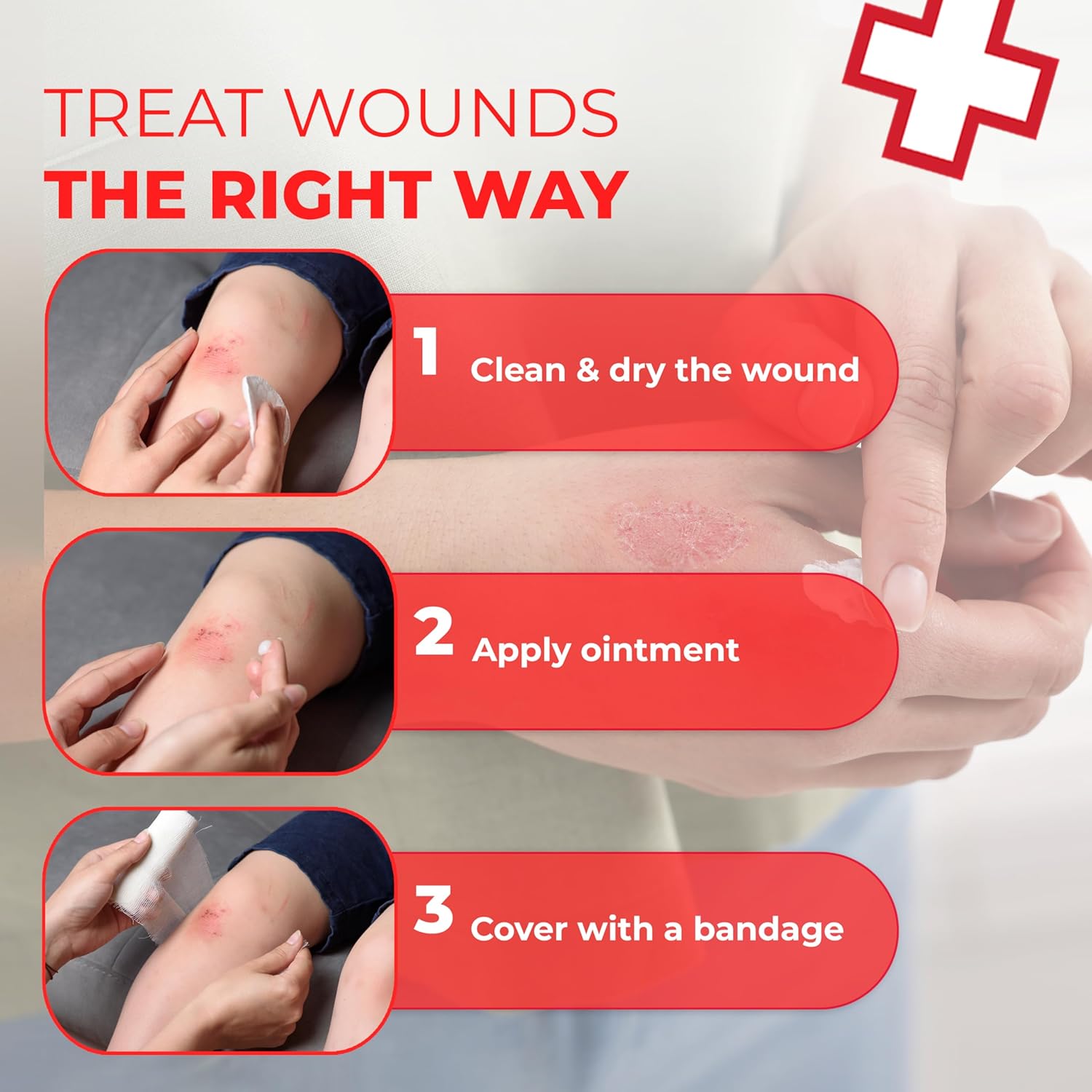 - PROMOTES QUICK AND HEALTHY HEALING: Ever Ready First Aid Triple Antibiotic Ointment helps to speed up the healing process, reduce inflammation, and protect minor skin injuries. By preventing infection, it supports skin regeneration and minimizes scarring, leaving your skin looking and feeling healthier after each use.