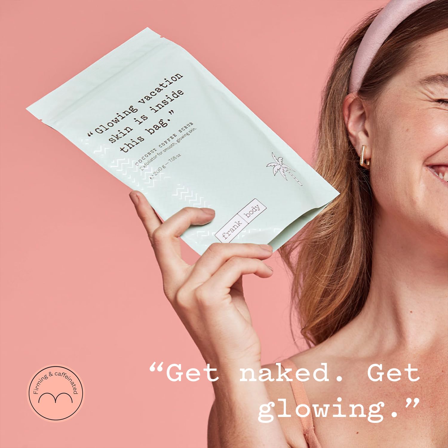 Frank Body Coconut Coffee Scrub | Natural, Vegan, Cruelty Free Exfoliating Body Scrub Firms, Tones, and Brightens with Coffee Grinds, Grapeseed Oil, Coconut Oil, and Jojoba Beads | 7.05 oz / 200 g