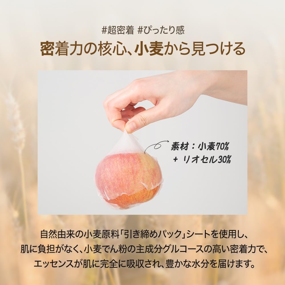 - [High Adhesion Sheet] Wheat fiber sheet adheres closely to the skin to maximize absorption of the hydrating essence.