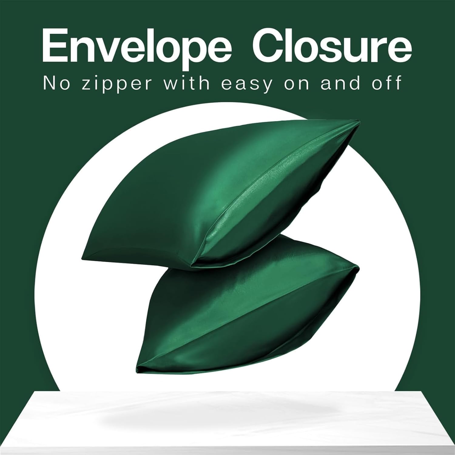 MR&HM Satin Pillowcase for Hair and Skin, Silk Satin Pillowcase 2 Pack, Queen Size Pillow Cases Set of 2, Silky Pillow Cover with Envelope Closure (20x30, Dark Green)