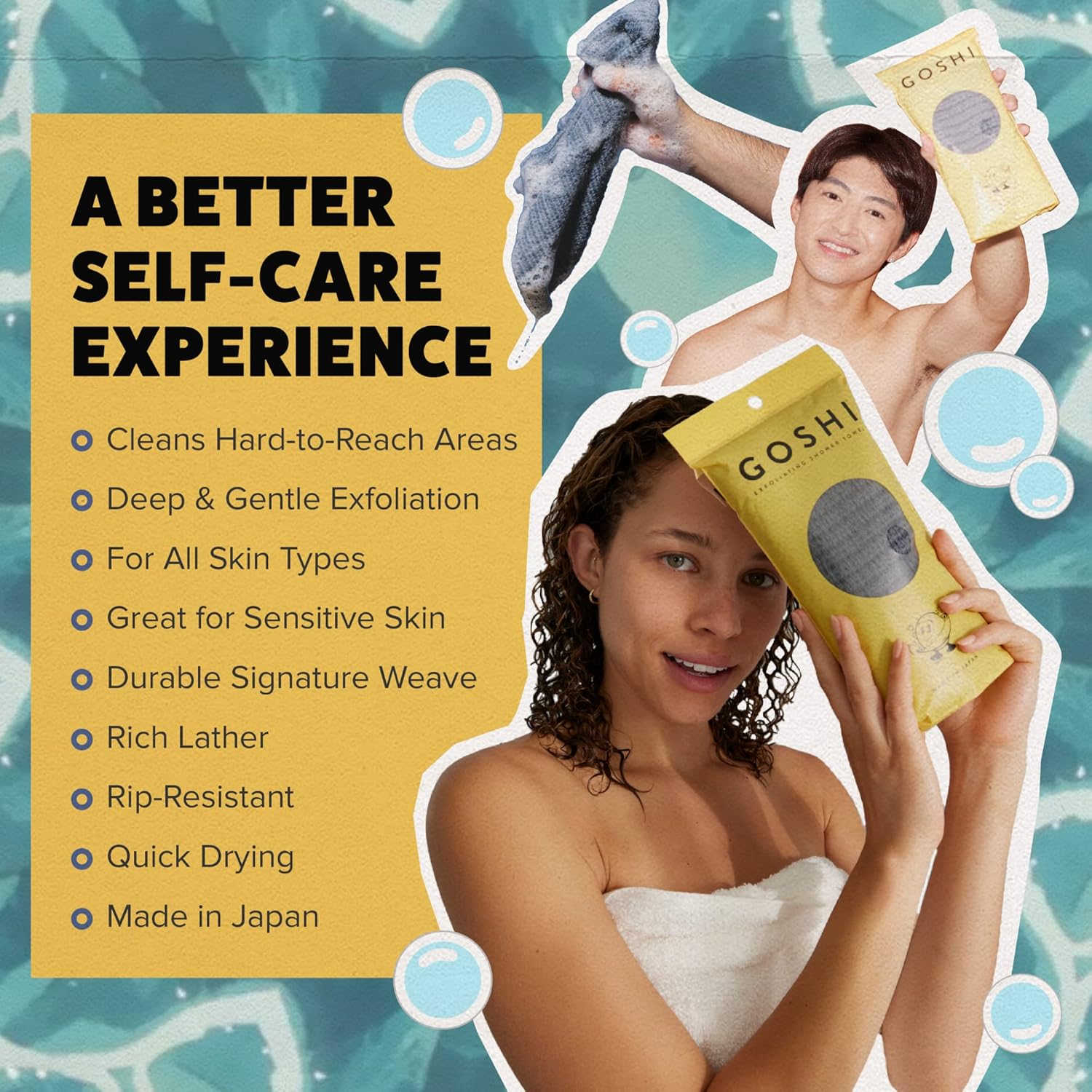 - Exfoliation Made Easy: Get ready to feel the softest and cleanest you’ve ever been. The GOSHI exfoliating towel is a game-changing Japanese shower towel and body scrubber with more substantial surface area coverage, allowing you to clean hard-to-reach areas without the cumbersome parts that can ruin your entire shower experience. The perfect replacement for your shower loofah, exfoliating glove, scrub brush, and even your old towel brand.