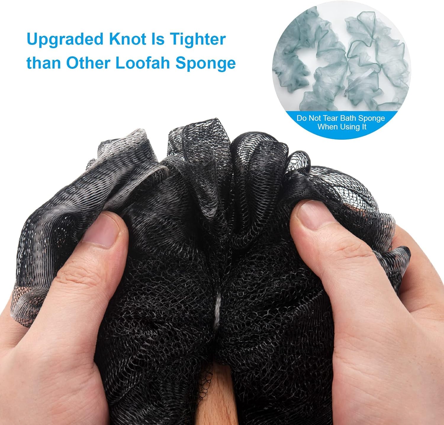 - Tighter knot design: The improved version of the bath sponge adopts special reinforcement and knotting technology, which greatly enhances the firmness and durability of the connection between the sponge and the handle. You don't have to worry about the bath sponge falling off the wooden handle.