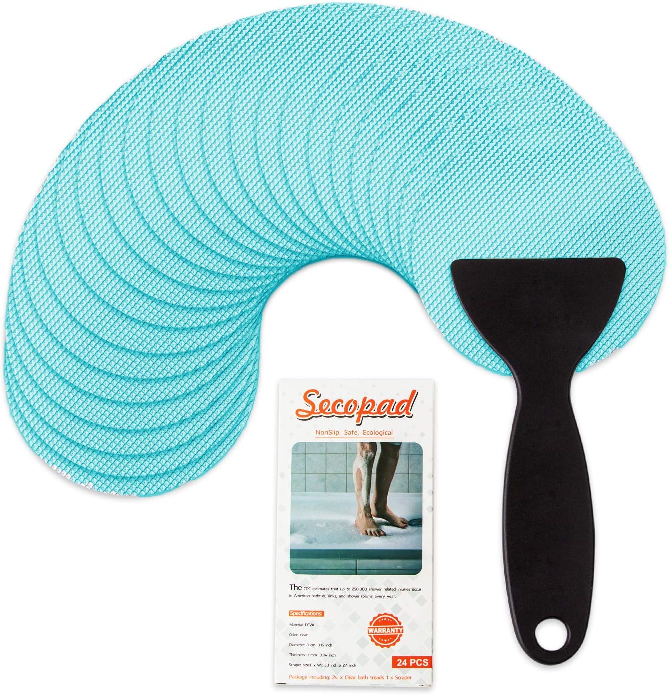 - Package Contents: Includes 24 round non-slip shower stickers (diameter 8.0cm or 3.15-inch) and 1 silicone scraper (5.2"×2.4"/13.2cm×6.1cm).Designed to support safer use in tub/shower areas