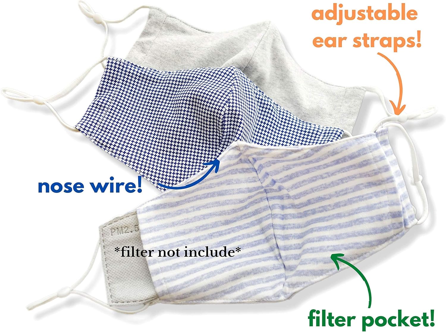 - FASHIONABLE MASKS: Stay stylish while you protect yourself with our unique designs. Light Blue and White Stripes, Heather Grey, and Navy Blue Houndstooth facemask prints that never go out of style! For more designs check out our collection of masks for Kids, Adults, Men and Women.