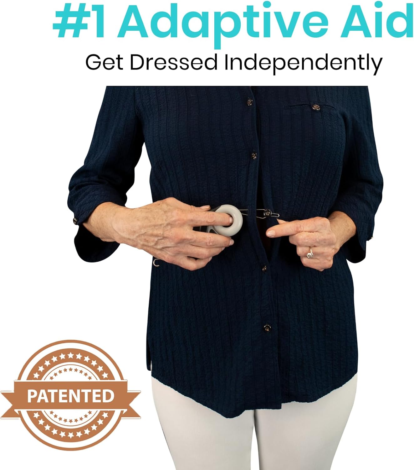 - BUTTON YOUR CLOTHES WITH EASE: Eliminating the frustration that comes from managing buttons and zippers, the Vive ergonomic button hook is designed to work with buttons of all sizes, on an article of clothing. Perfect for those with limited dexterity and those suffering from arthritis or carpal tunnel, the button hook makes buttoning clothing hassle-free, for greater independence while dressing for the day.
