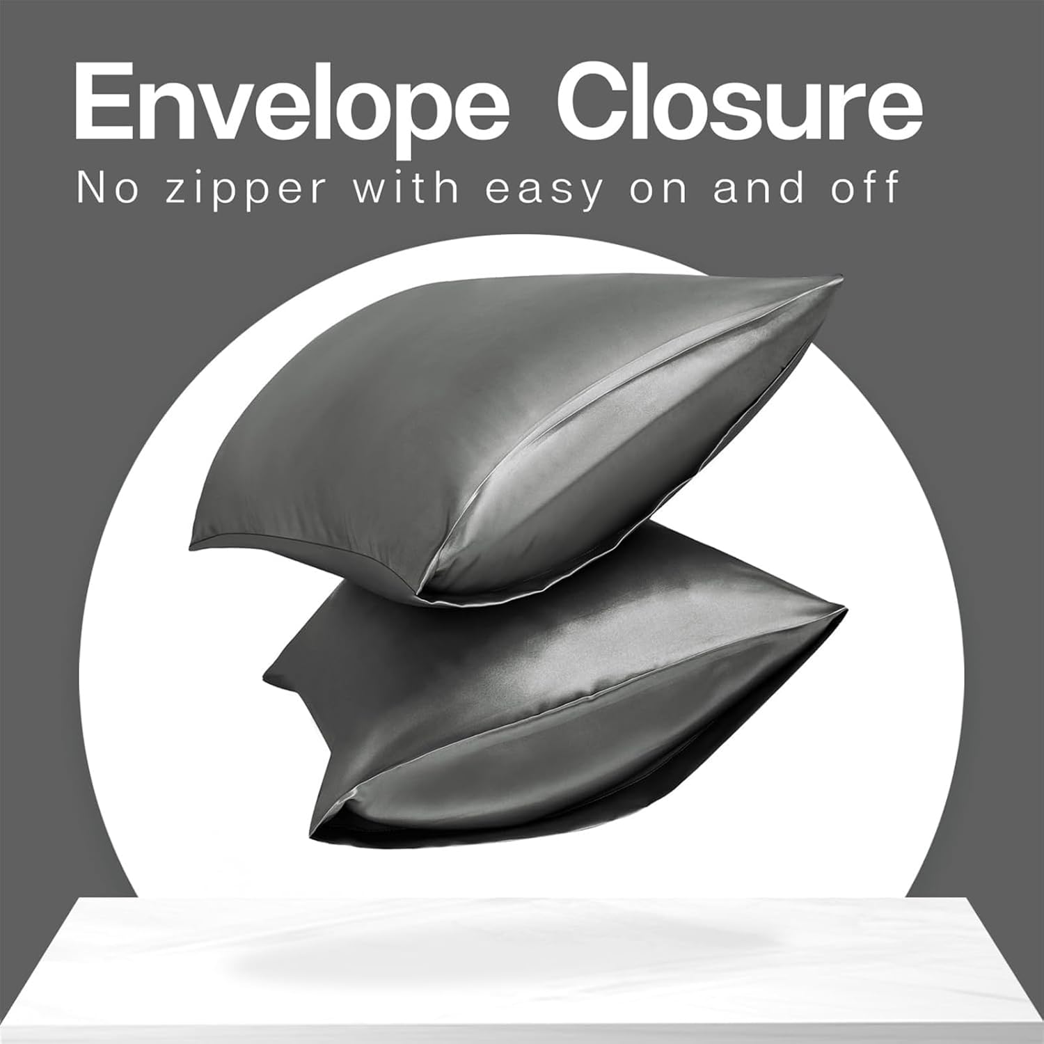 MR&HM Satin Pillowcase for Hair and Skin, Silk Satin Pillowcase 2 Pack, Standard Size Pillow Cases Set of 2, Silky Pillow Cover with Envelope Closure (20x26, Dark Grey)