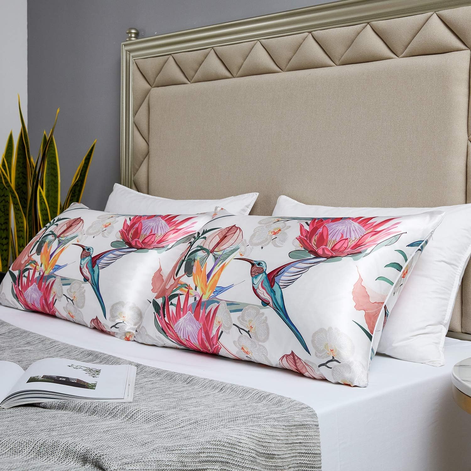 MR&HM Satin Pillowcase for Hair and Skin, Silk Satin Pillowcase 2 Pack, Standard Size Pillow Cases Set of 2, Silky Pillow Cover with Envelope Closure (20x26, Floral Bird)