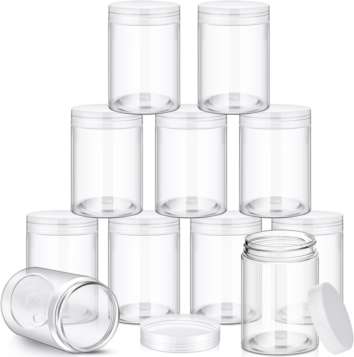SATINIOR 12 Pack Plastic Container Jars with Lids Round Clear Travel Cosmetic Container Jars for Toiletries, Lotion, Cream, Ointments, Makeup, Rhinestone, Samples, Kitchen Storage(10 oz,Clear)