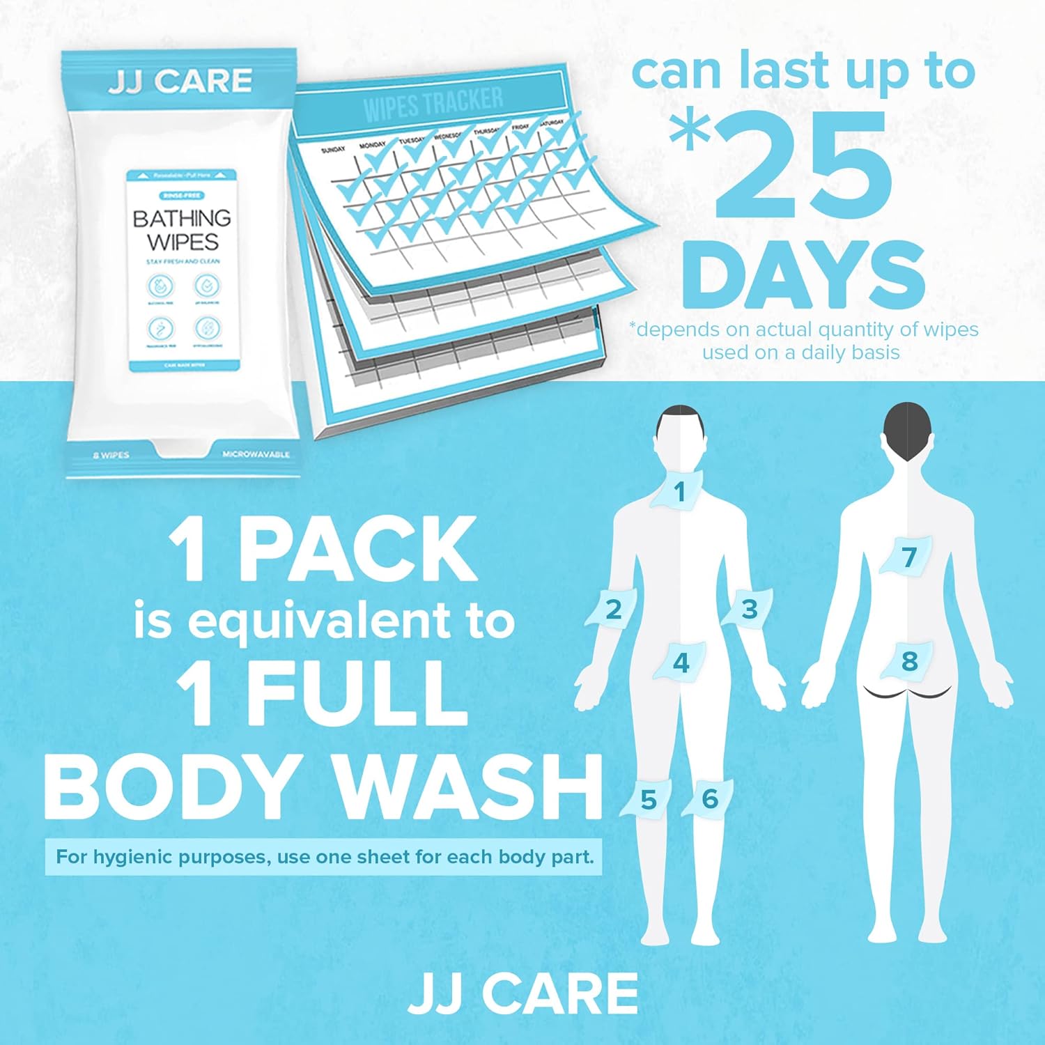 JJ CARE Body Wipes for Adults Bathing - Pack of 25 Shower Wipes For Adults Rinse Free, 200 Count Disposable No Rinse Disposable Washcloths, Waterless Body Wash for Elderly