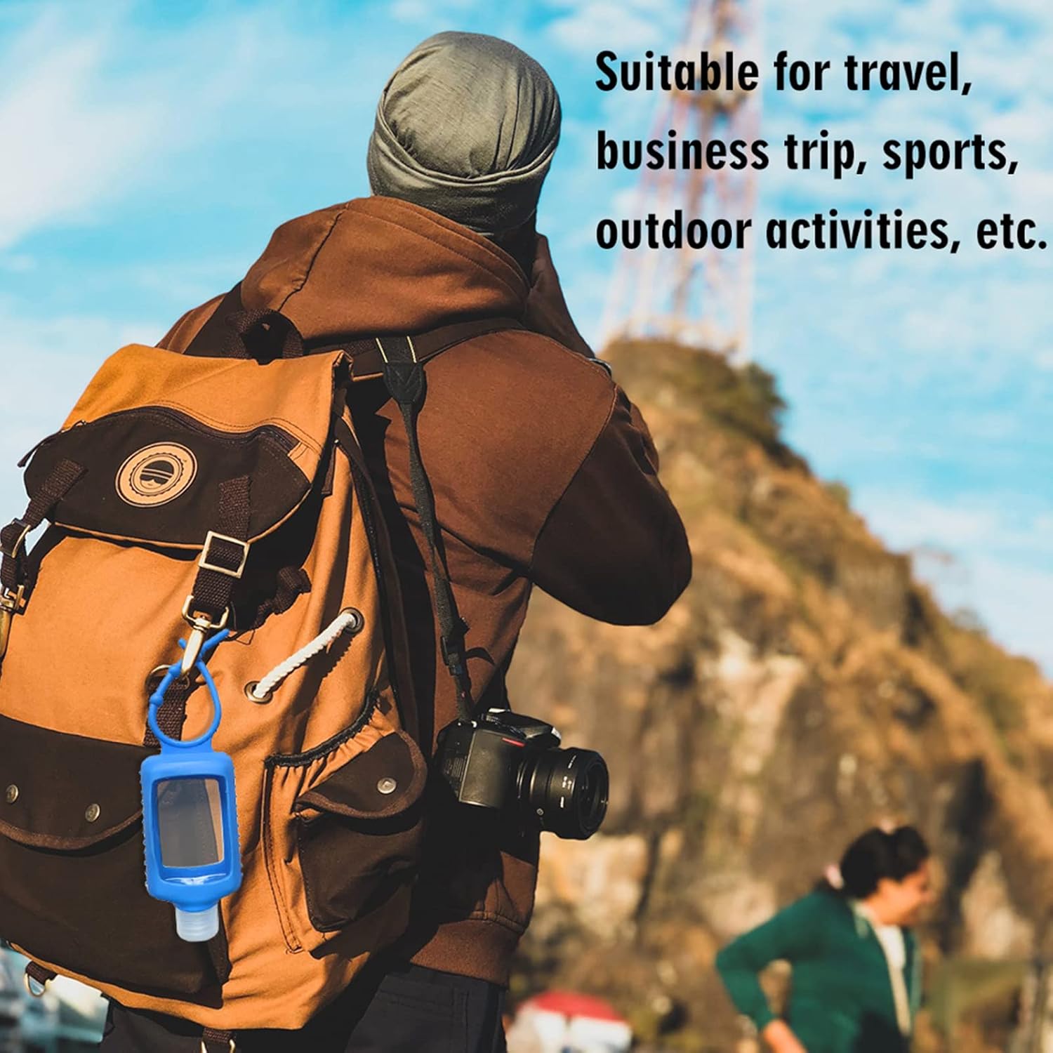 - ăTravel Size Hand Sanitizer HolderăYou will get 8pcs plastic empty clear travel size hand sanitizer bottles, 8pcs keychain makes into 12 sets hand holder and a foldable funnel in a pack. These bottles are 60ml/2oz. Kindly Tips: the color of the silicone case are random, which means that you may get some silicone case of the same color. 5 different colors available.