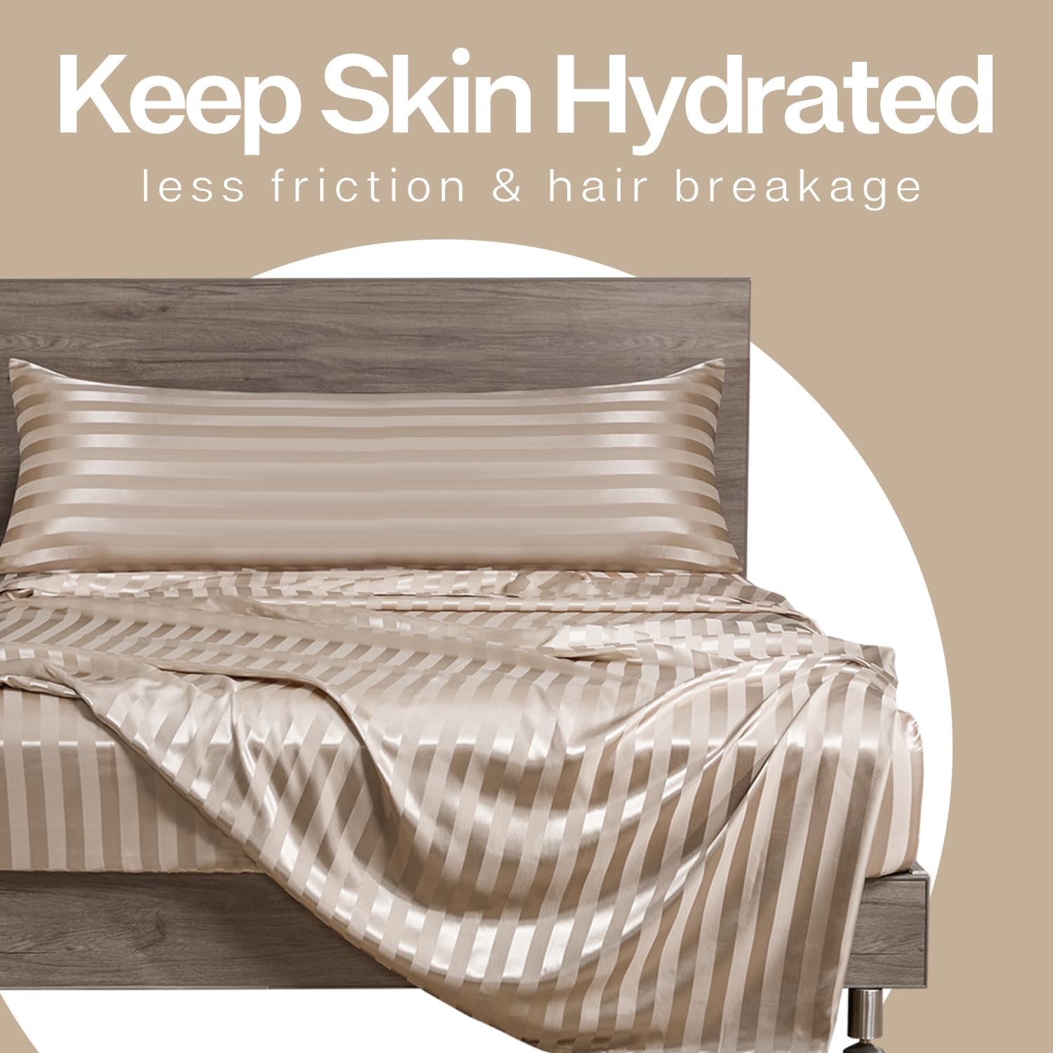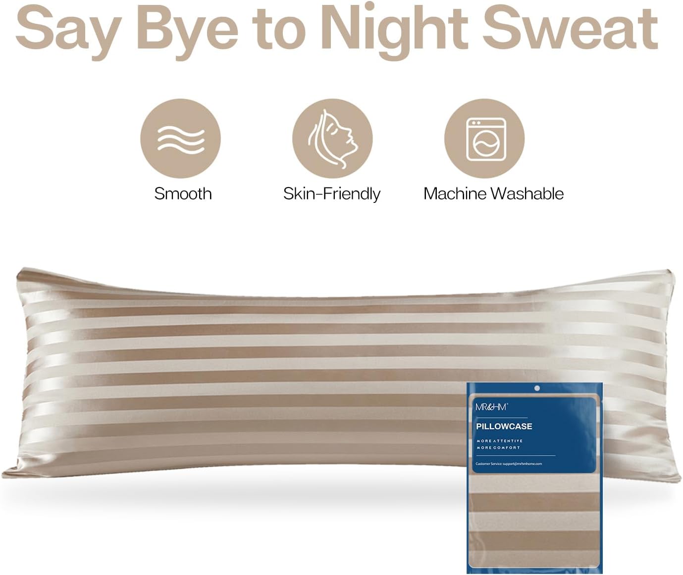 MR&HM Satin Body Pillow Cover, Soft and Breathable Body Pillow Case with Envelope Closure, Cooling and Silky Long Pillowcase for Hair and Skin,Grey (20x54, Champagne Striped)