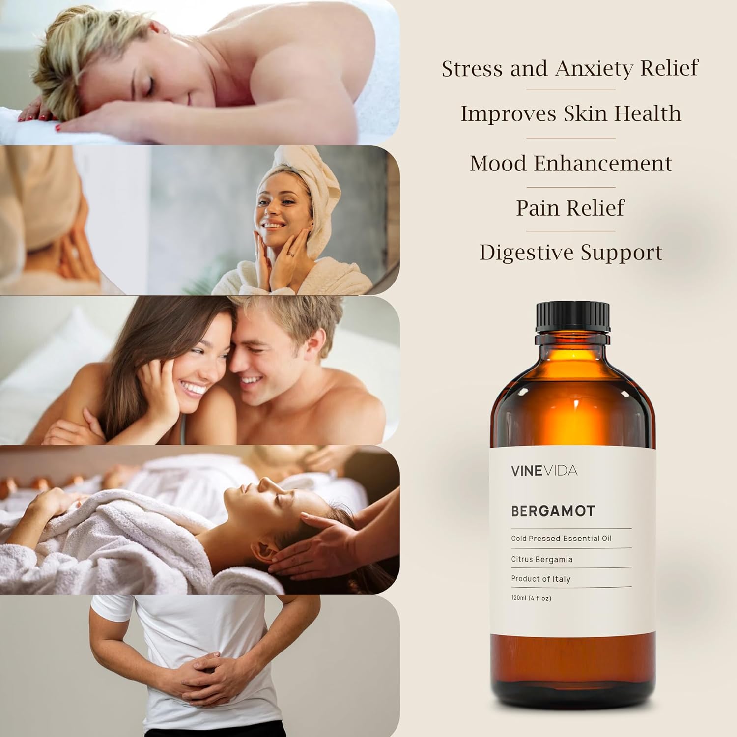 VINEVIDA Bergamot Essential Oil 16 oz - Undiluted, Pure, Vegan, and Sustainable