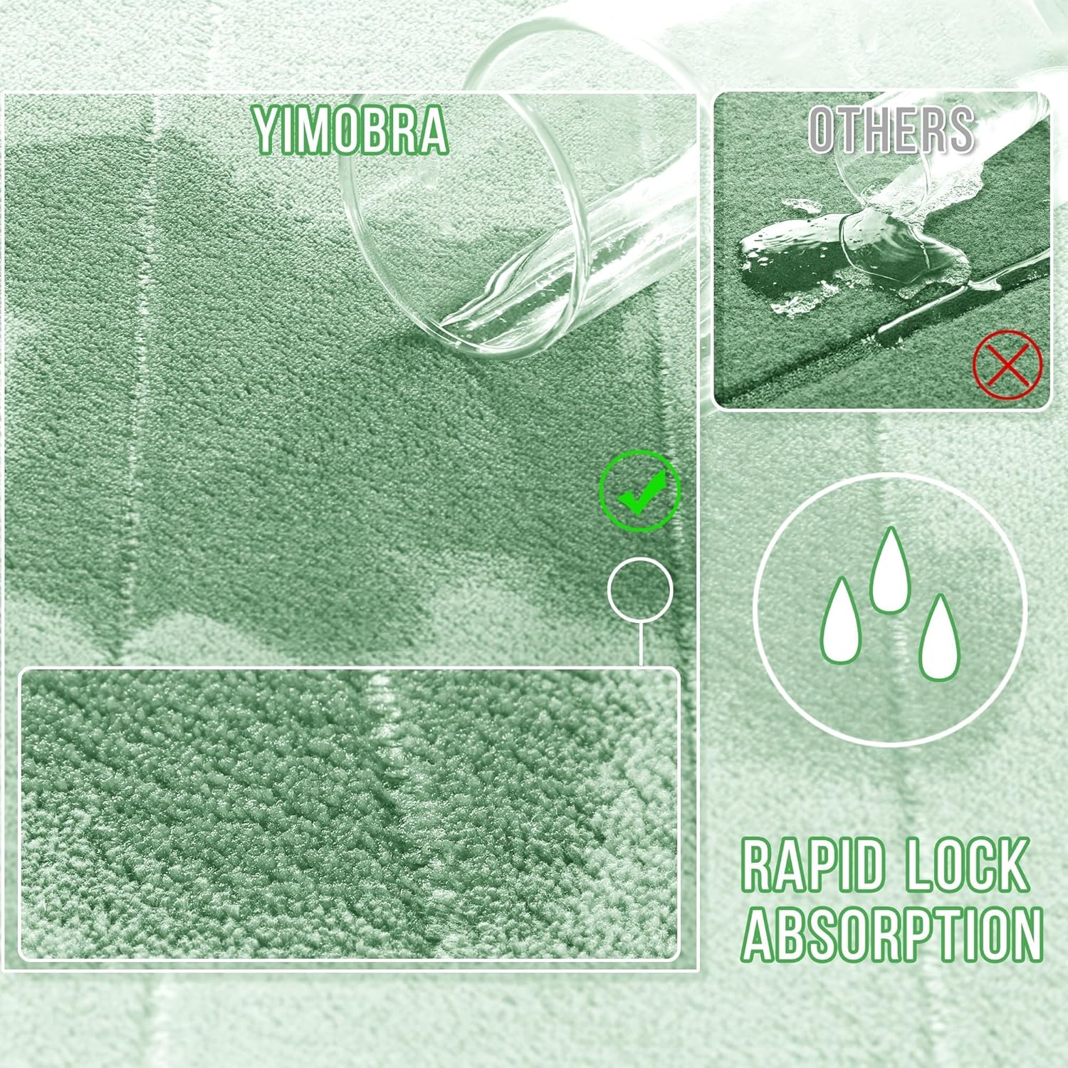 - 【Rapid Lock Absorption: Coral Velvet + Deep Foam Core】Yimobra bath mat engineered with premium coral velvet surface and deep memory foam core, our Rapid Lock technology instantly traps water. The coral velvet fibers actively pull in liquid while the high-density foam core prevents seep-through, ensuring maximum dryness after every use