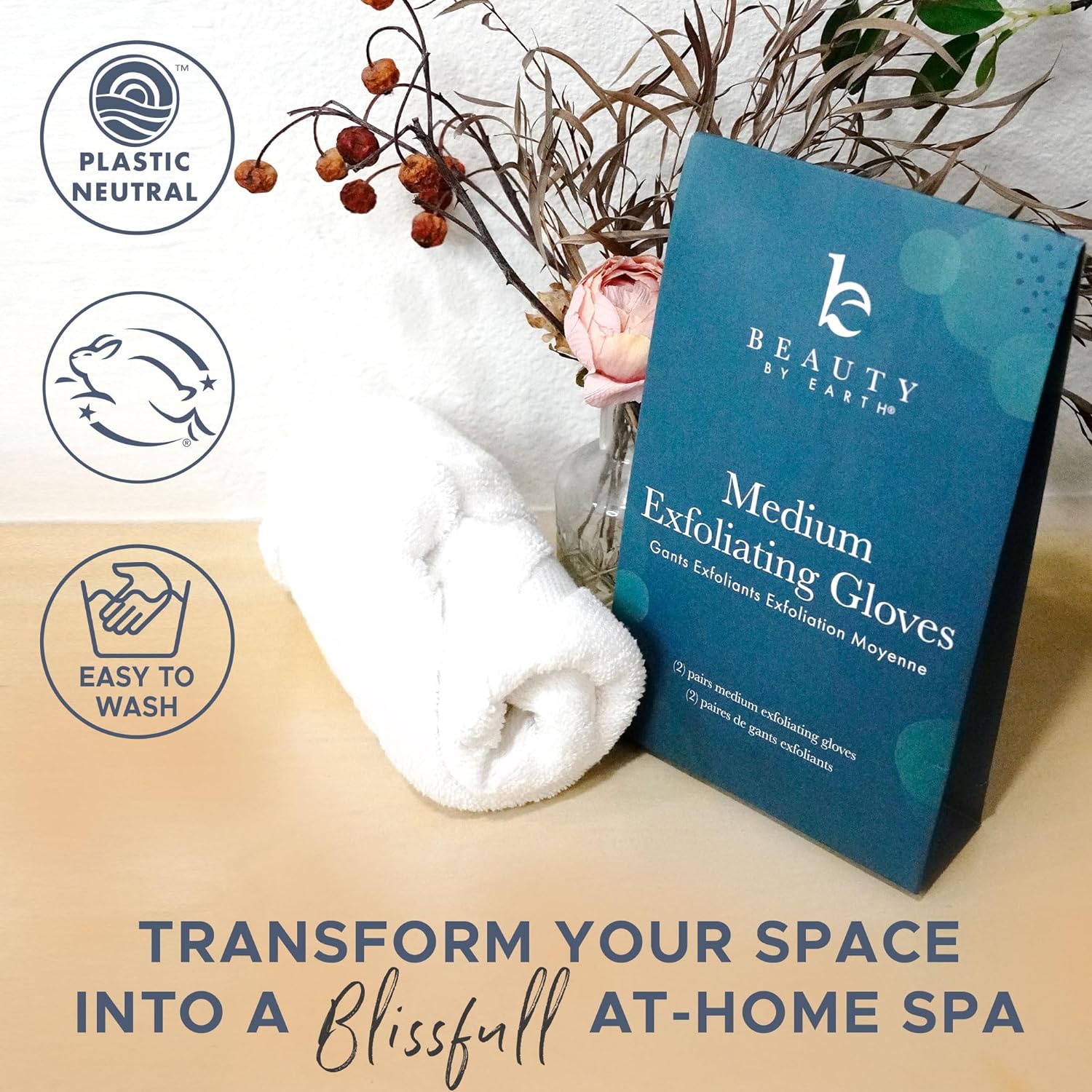 Exfoliating Glove (4 pcs, 2 Pairs) - Medium Shower Gloves for Body Scrub, Exfoliates & Removes Dead Skin