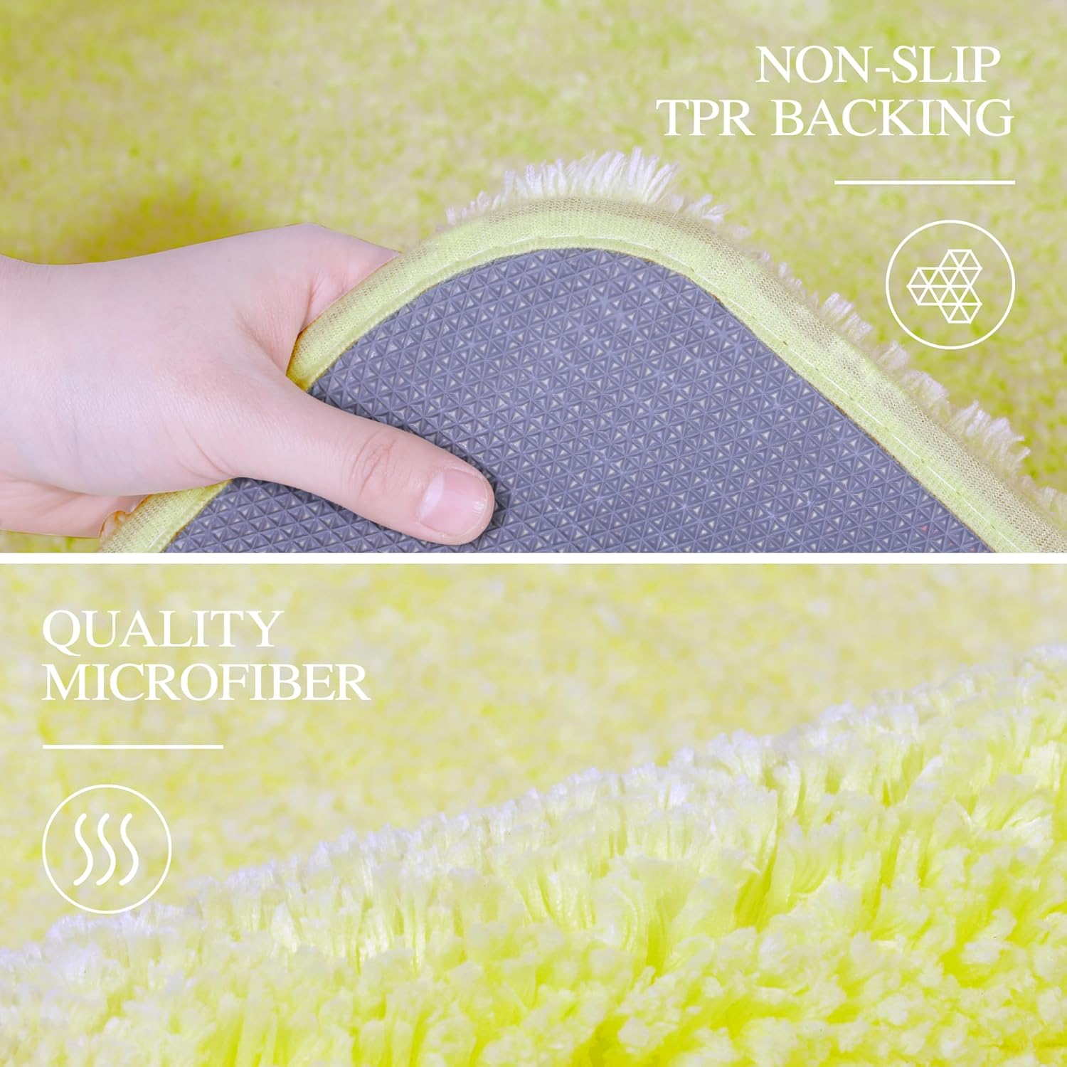 - ❤ NON-SLIP: The nonslip room mat for floor is backed with TP Rubber to prevent shifting and skidding. Please place the non-skid toilet rug on DRY SMOOTH FLOOR only. Water under the bathroomrug can cause it to slip. Keep bottom of the bath rug dry.