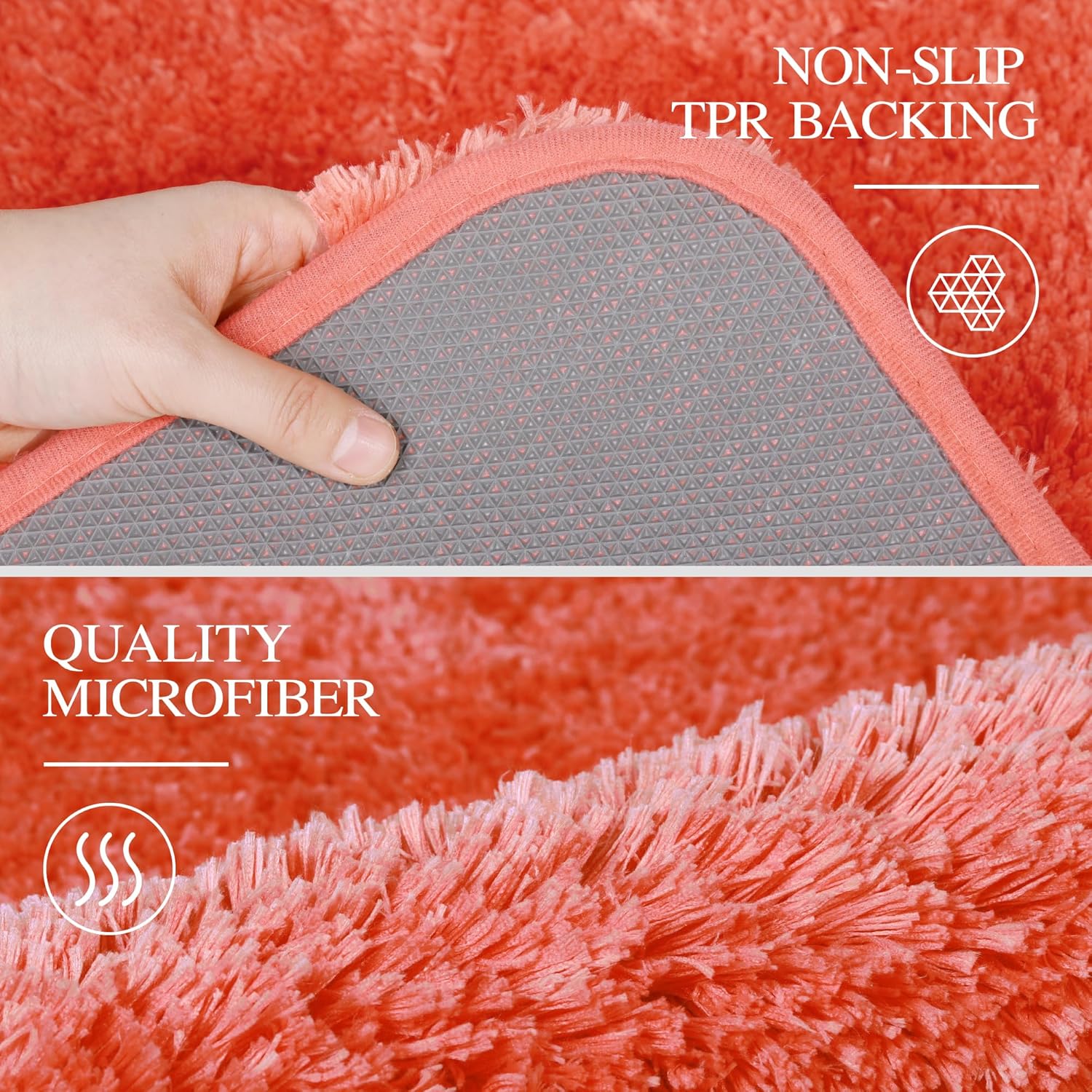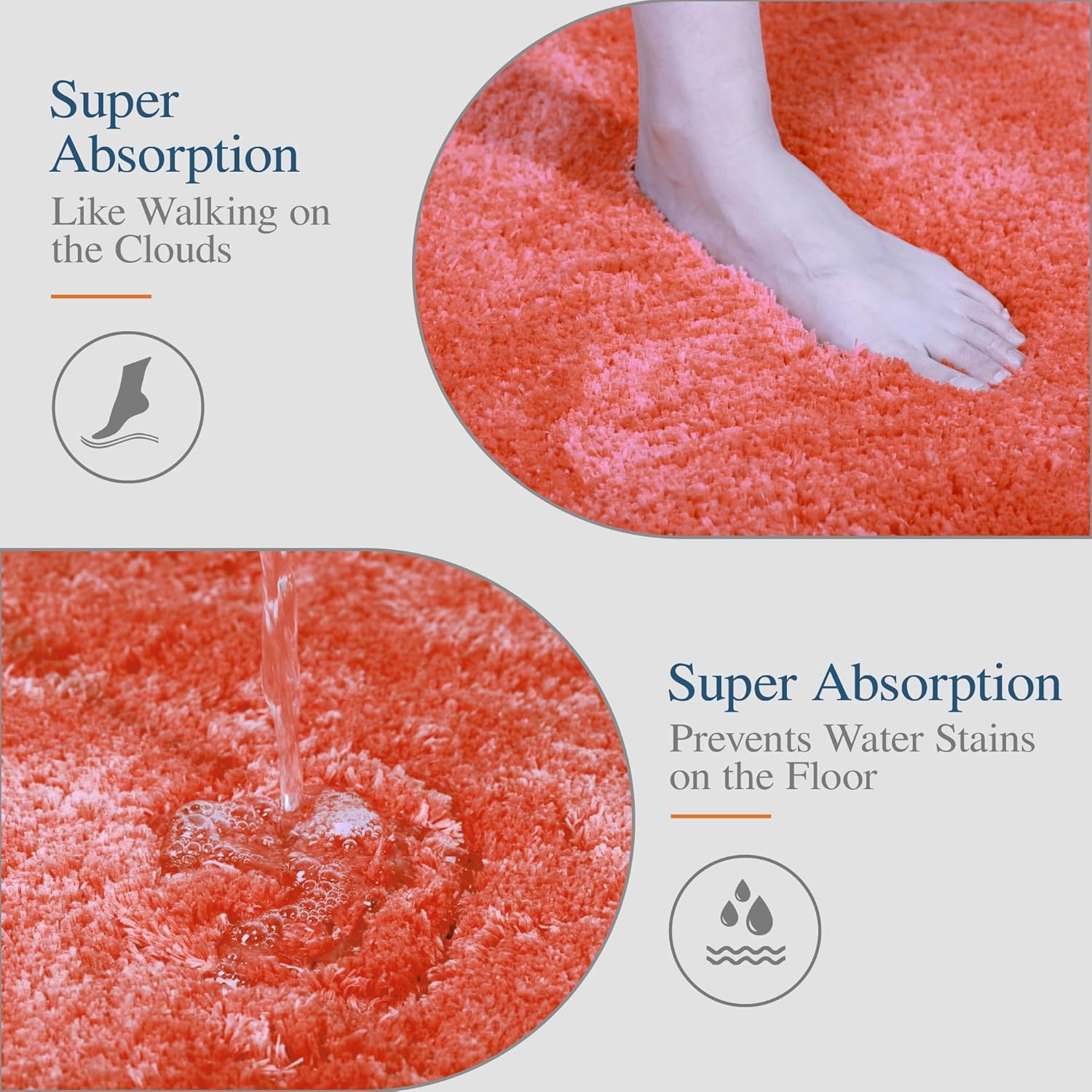 Walensee Living Coral Bath Mat, 24" x 36", Extra Soft High-Pile Microfiber, Absorbent, Non-Slip, Machine Washable, Luxury Bathroom Rug for Bathroom Floor