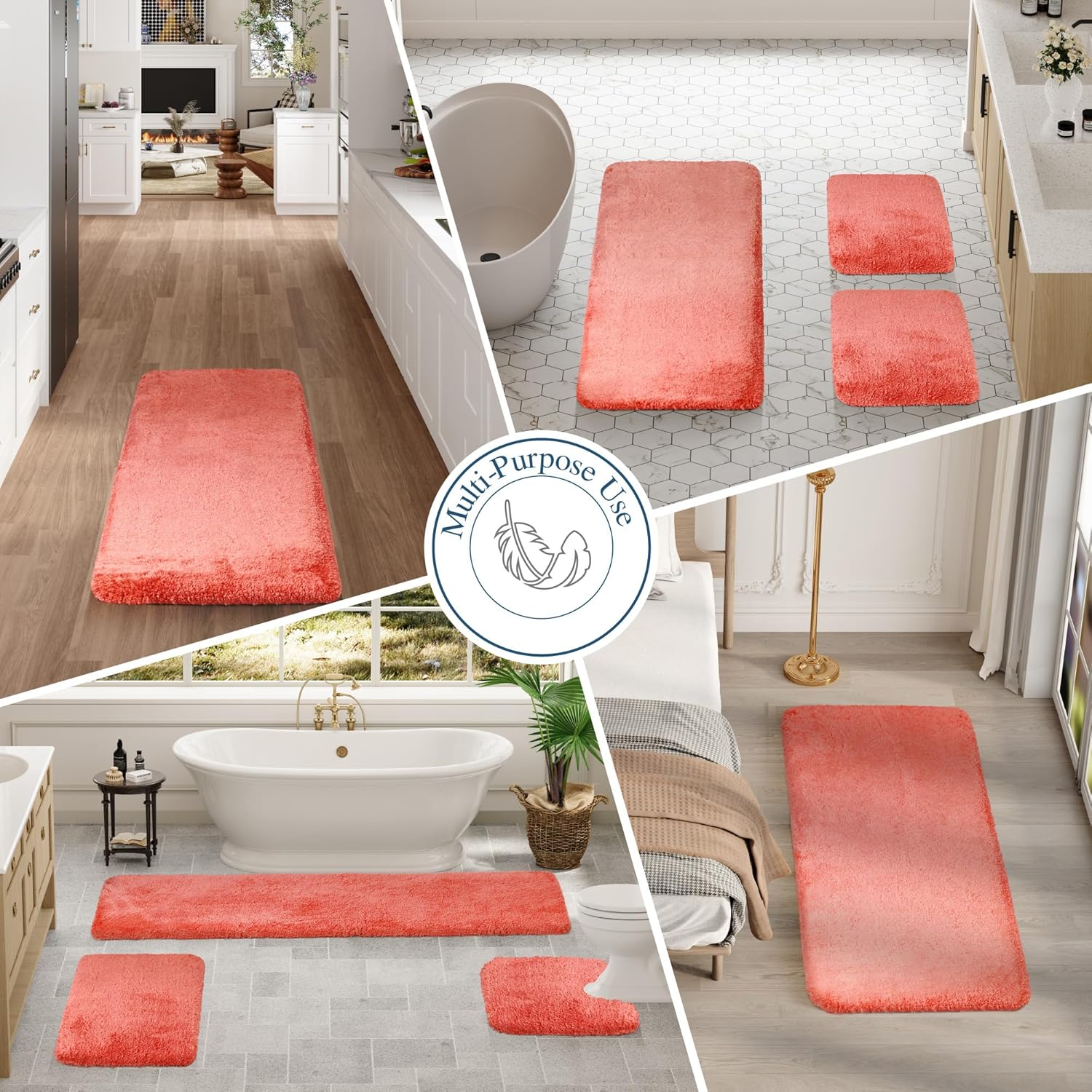 Walensee Large Bathroom Rug (24 x 72, Living Coral) Extra Soft and Absorbent Shaggy Mat Machine Washable Microfiber Bath Mat, Non Slip Bath Mat, Luxury Bathroom Floor Mats
