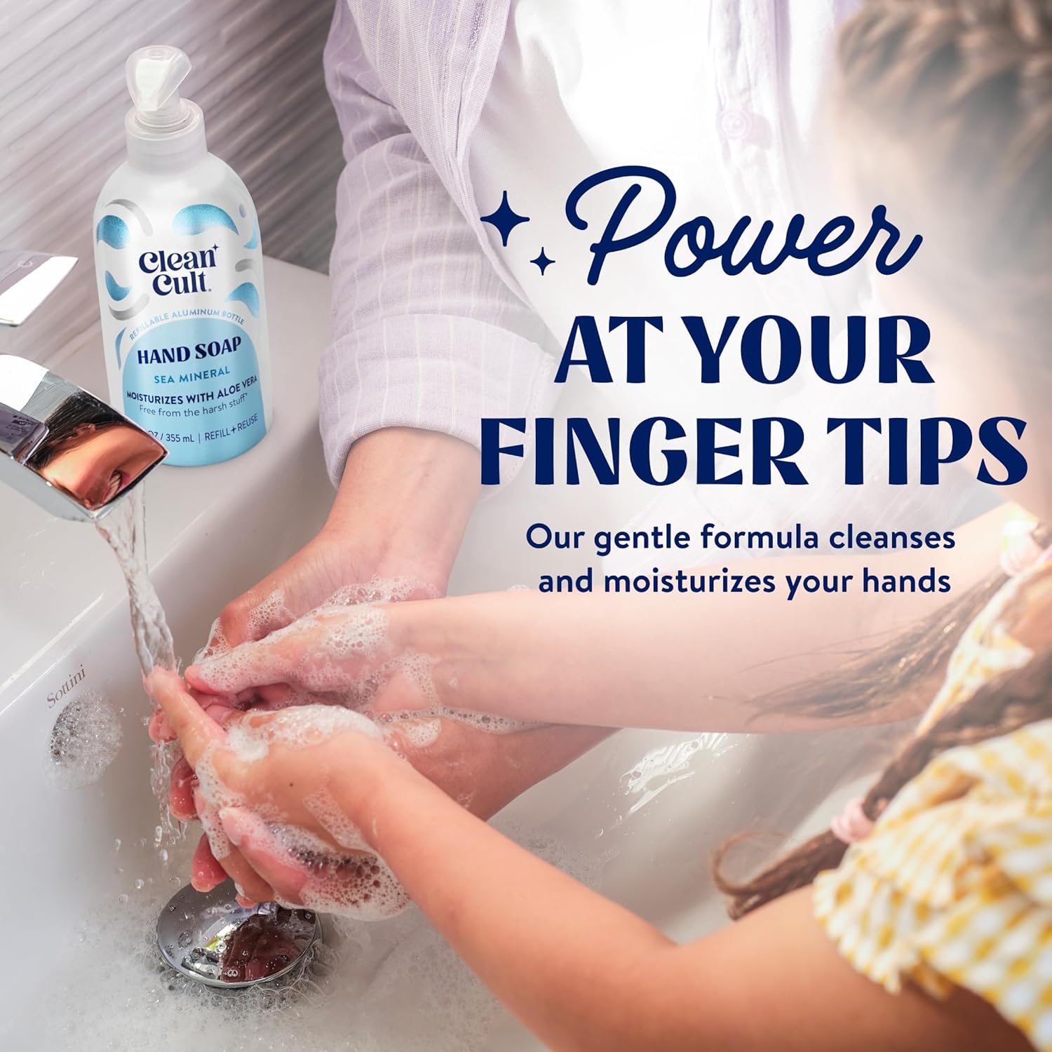 Cleancult - Liquid Hand Soap Refills - Sea Minerals - Gentle On Sensitive Skin - Made with Aloe Vera & Essential Oils - Eco Friendly - Paper-Based Packaging - 32 oz/3 Pack