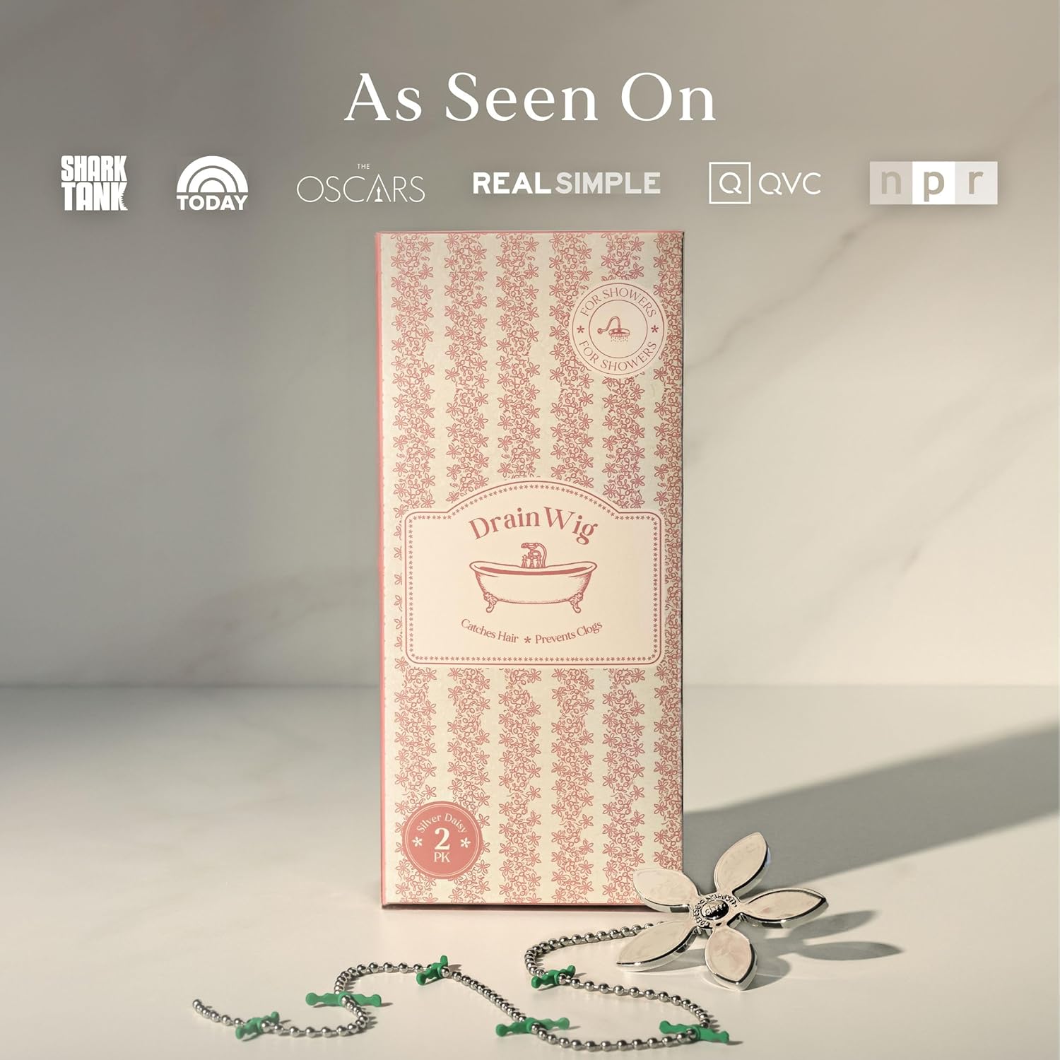 DrainWig Shower Drain Hair Catcher – Disposable Silver Flower (4-Pack) – No-Touch Hair Removal for Flat Shower Drains – As Seen on Shark Tank