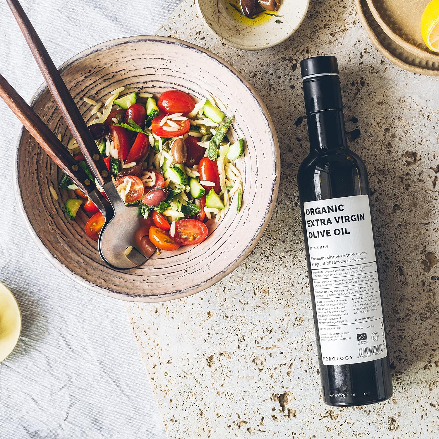 Erbology Organic Extra Virgin Olive Oil 17 fl oz - Early Harvest - 742 mg/kg Polyphenols - 0.15% Free Acidity - 100% Coratina Olives Hand-Picked and Pressed on a Family-Run Single Estate in Apulia, Italy