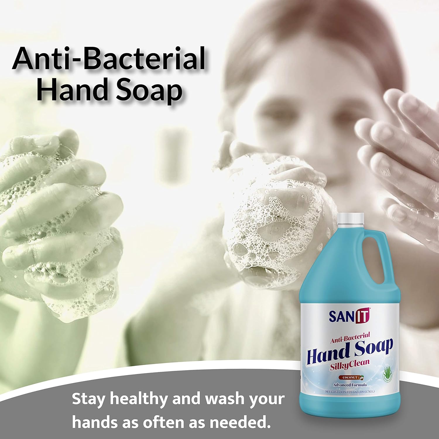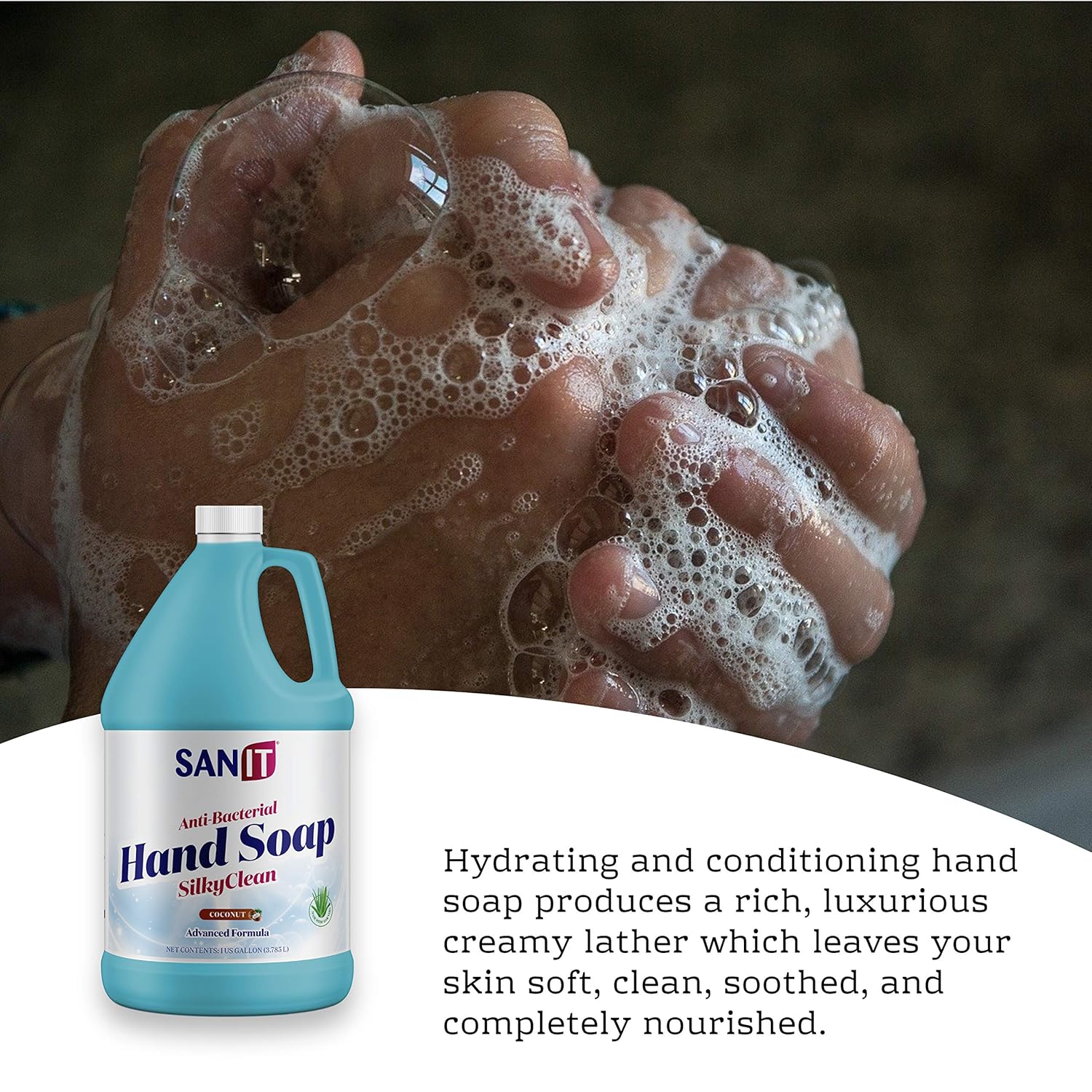 Sanit Silky Clean Antibacterial Liquid Gel Hand Soap Refill - Advanced Formula with Coconut Oil and Aloe Vera - All Natural Moisturizing Hand Wash - Made in USA, Coconut, 1 Gallon
