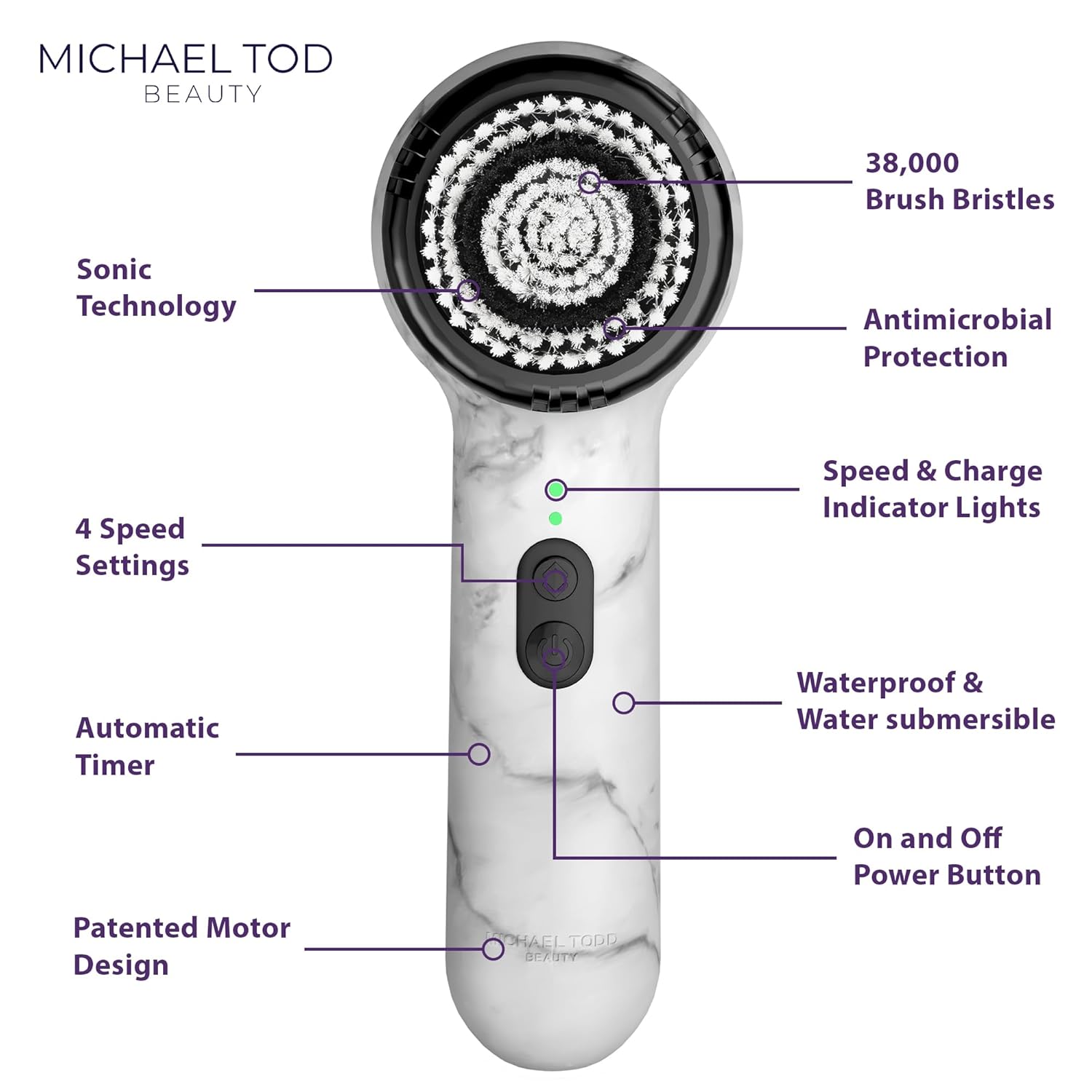 Michael Todd Beauty Soniclear Allure 2024 Best of Beauty Winner Facial Cleansing + Exfoliation Brush System with 4 speeds, Serum Infusion Head + Travel Case