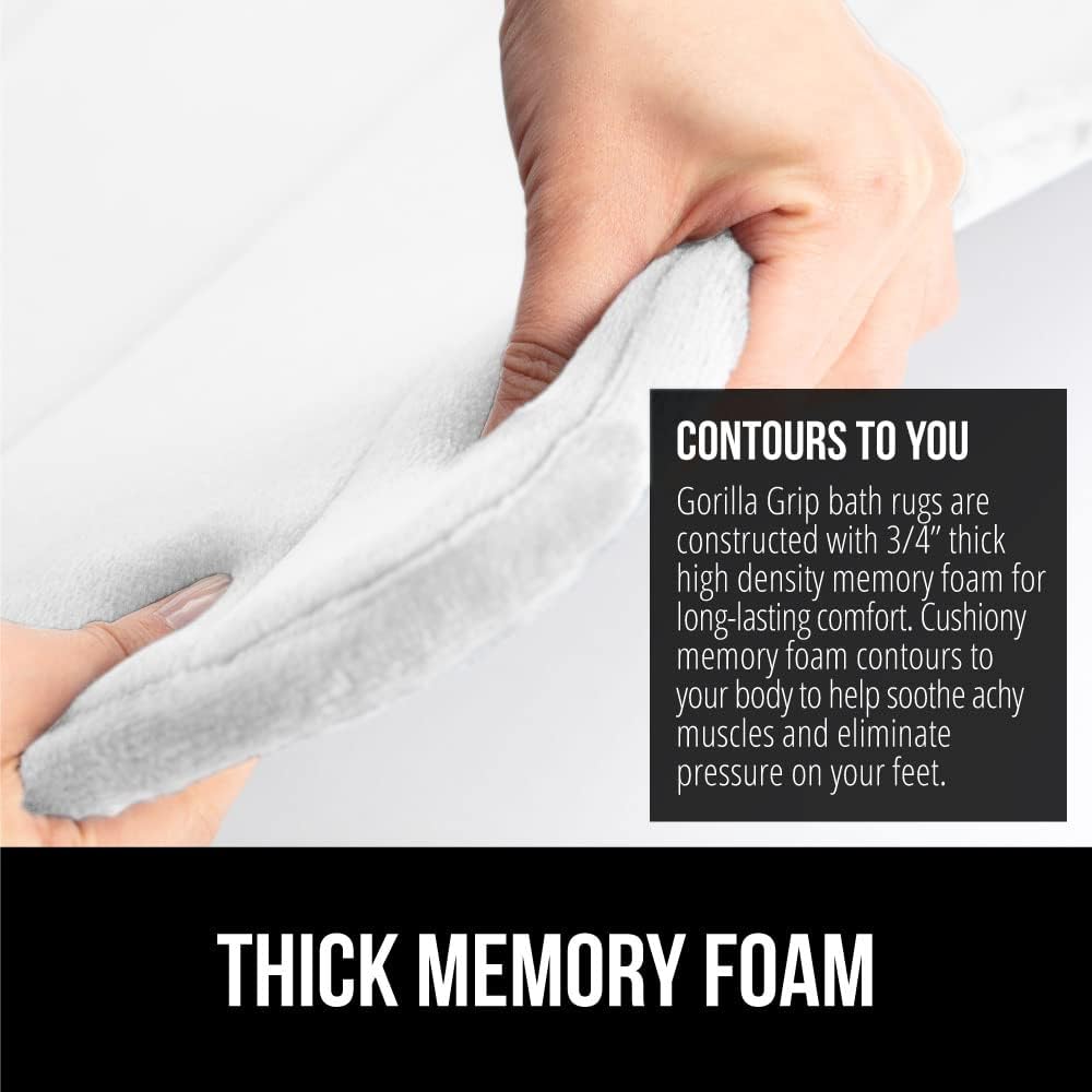 GORILLA GRIP Memory Foam Bath Mat, Soft Absorbent US Designed Bathroom Rug, Gripping Dots Machine Washable Bathmat, Cushioned Floor Mats, Shower Sink Rugs Room Décor Accessories, 24x17 White