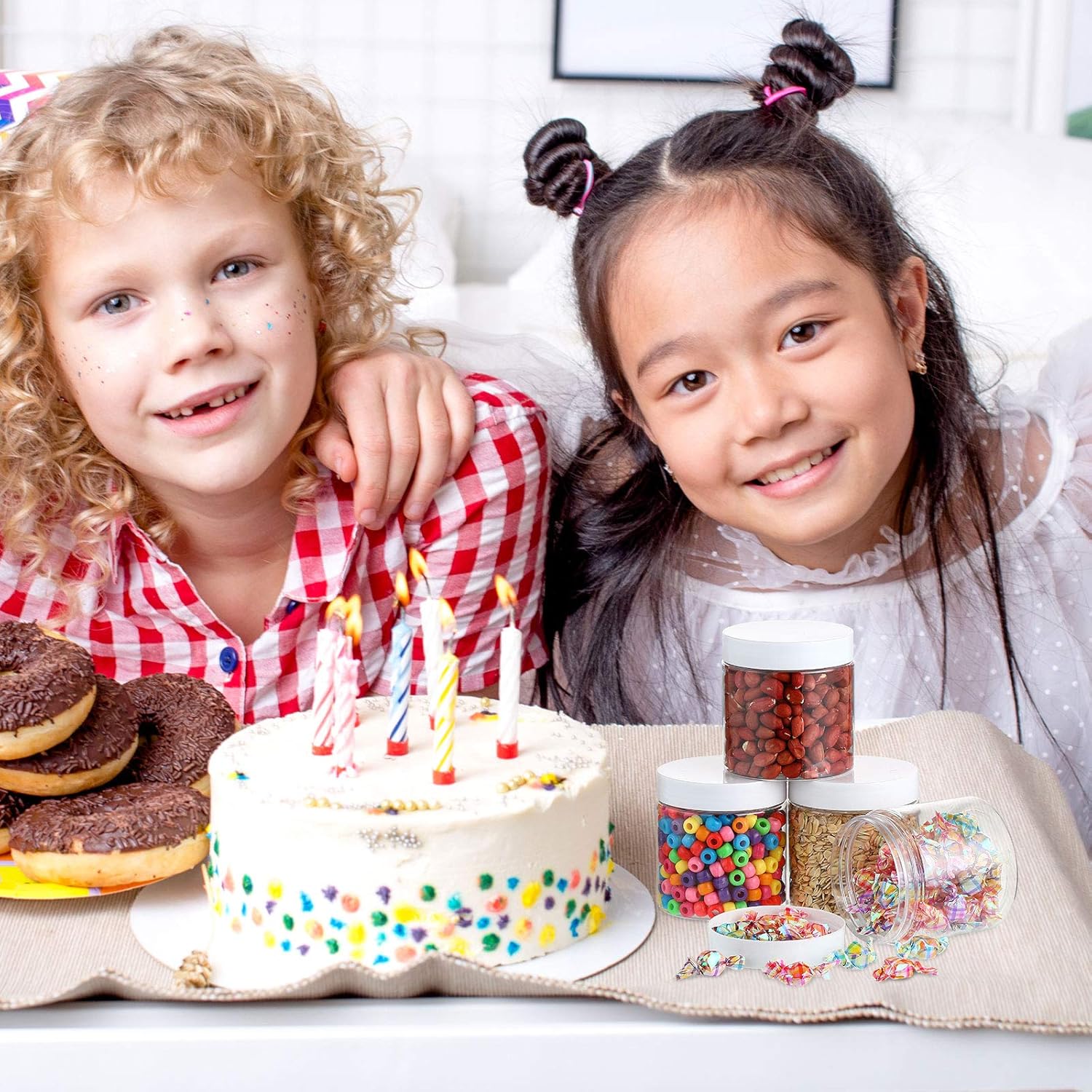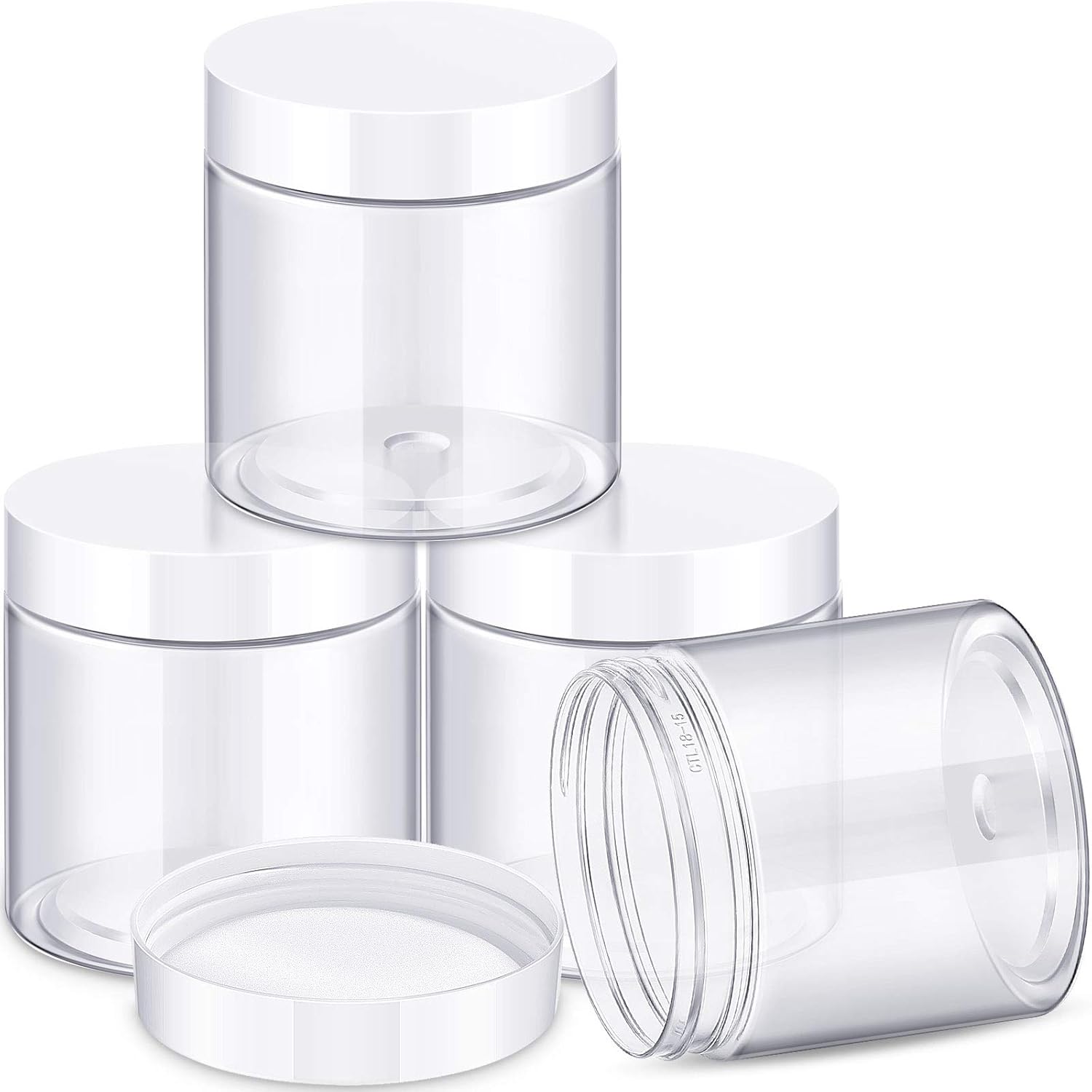 - What you receive: there are 4 pieces plastic jars with white screw-on lids. They are durable and refillable, measuring about 5.2 cm/ 2.05 inches in diameter, 4.3 cm/ 1.7 inches in height