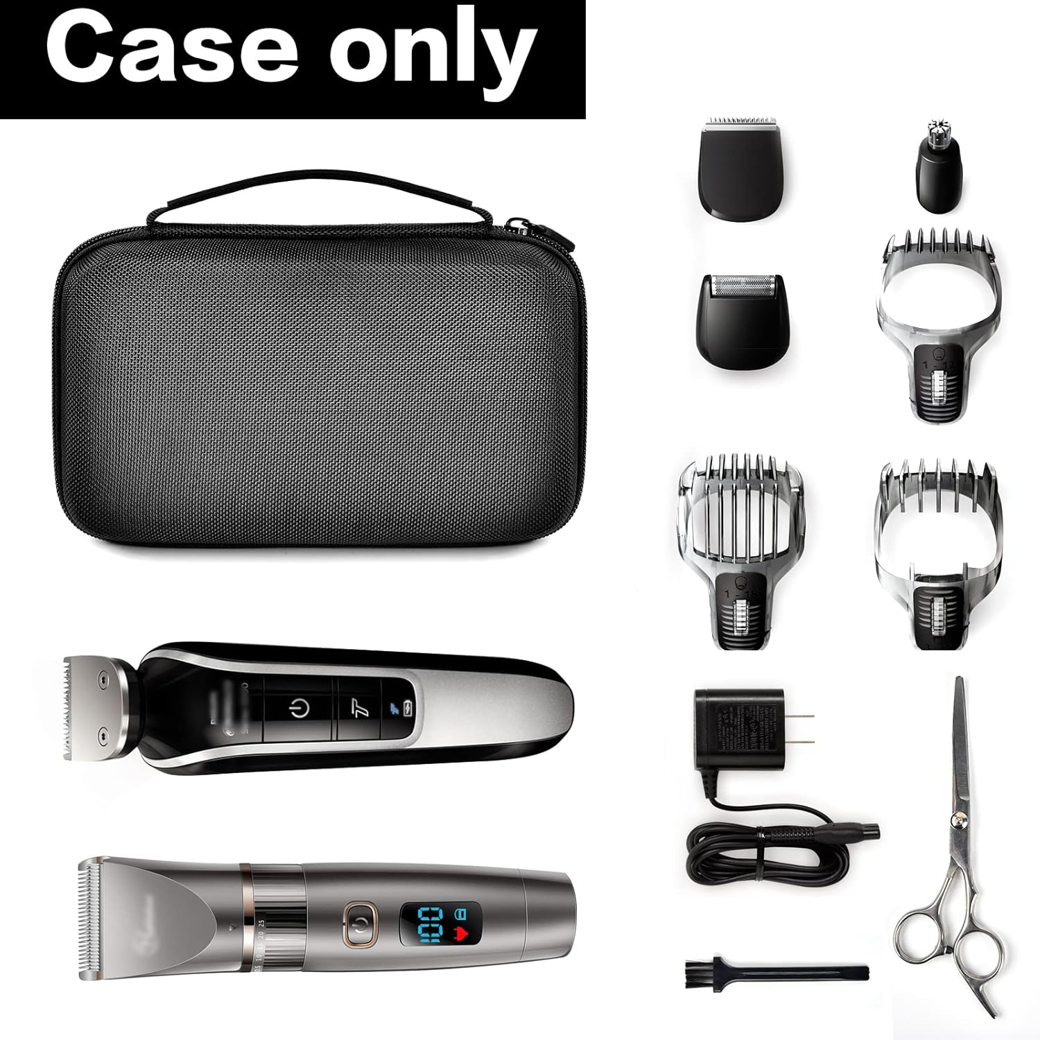 - Clipper Case Perfect Fits: Clippers bags for barber is specially designed for beard trimmer and men grooming kit. Hair trimmer organizer is used to store hair clipper, scissors and grooming tools. With zipper mesh pocket for guide combs, charging cord, cleaning brushes, blades, oils, instruction manuals and more grooming accessories in one place. Hair clippers travel case external size: 8.86*5.3*2.95inches. Note: For sale is clipper guard holder, exclude mens hair clippers and accessories.